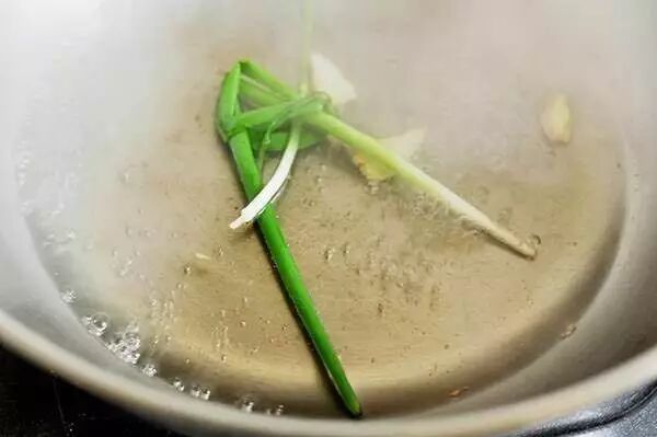 2、锅内放水,白酒,姜片,打结的小葱,盐,煮沸