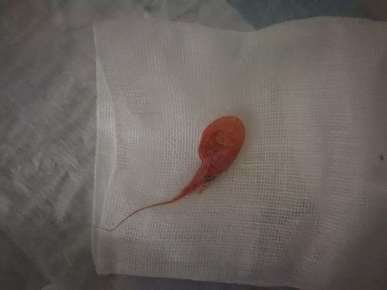 急诊入院后,首诊医生发现裘先生的支气管里确实有一异物,形似一只虾。