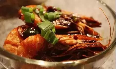 材料: 活大河虾350克,酱油20克,葱段2克,醋15克,白糖25克,熟菜油500克,绍酒15克。
