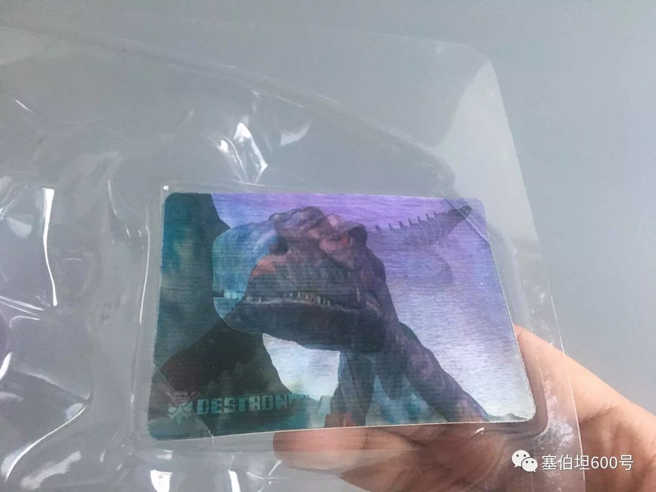 和美版相比,日版最有特色的就是独占的人物卡。这个人物卡从不同的角度看,可以看到霸王龙不同的形态。不过其实这种卡片在当时并不稀奇,很多玩具里都有这种类似的卡片。
