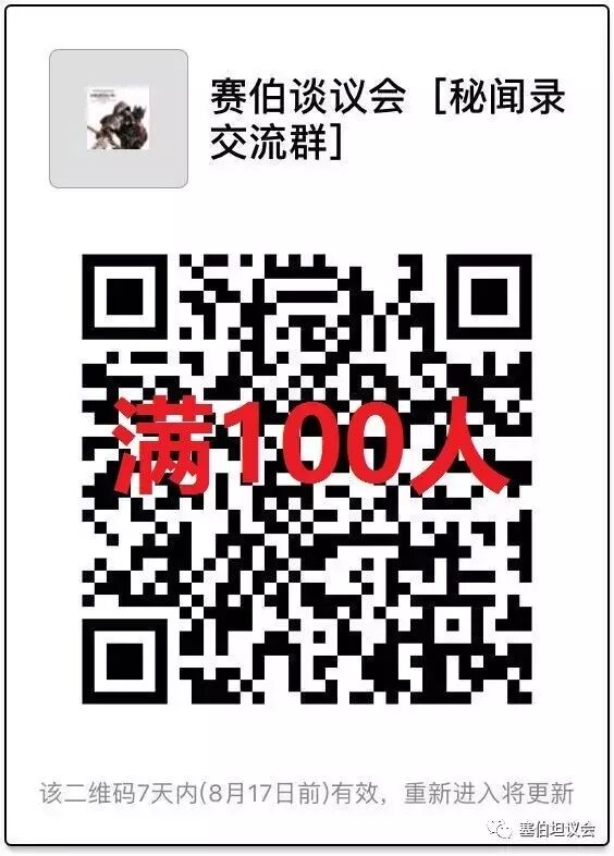 前几日小编建立的微信交流群,由于微信满100人无法再扫码加入原因,小编只能把个人微信号码贴到这里,请大家申请时候备注塞伯坦议会。到时候如果有陌生人小编可就无法把你拉到群里了。![]()