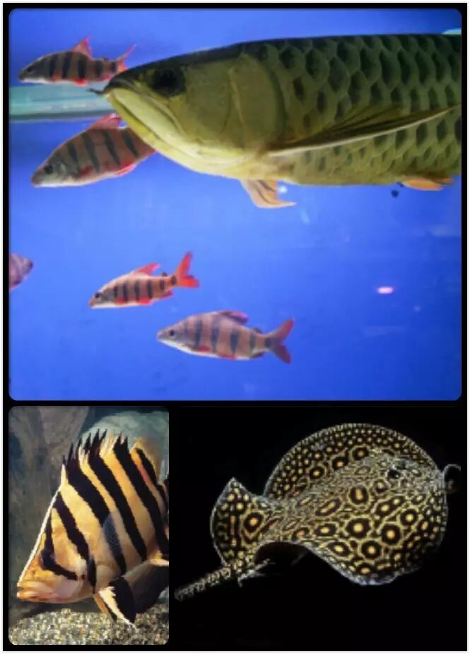 不知道大家有没有发现,一般龙鱼养得好都会与其他三种鱼混养,它们分别是泰国虎鱼、飞凤鱼、虹鱼,组合起来就是所谓最传统的左青龙,右白虎,上玄武,下朱赤,四大神兽。