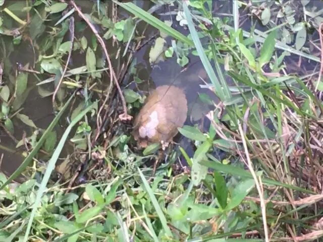我原先放了5个龟,2条金花罗汉在鱼塘里面。