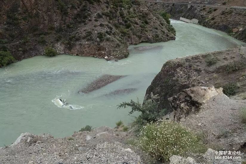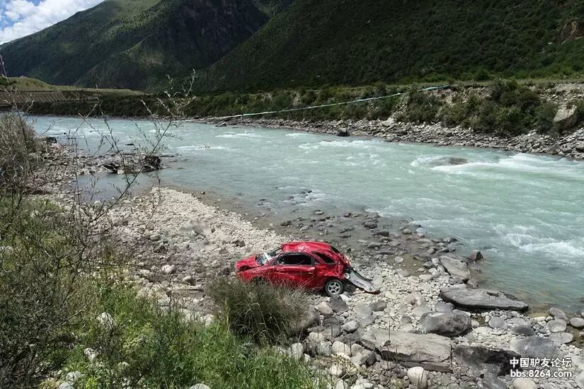 | 河里的红色汽车,告诉我们,这里的路况还是那么险峻。。。 |