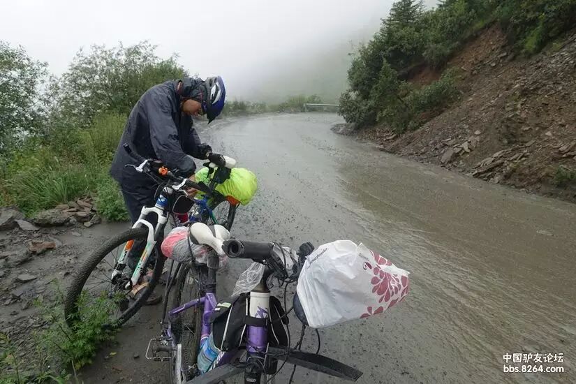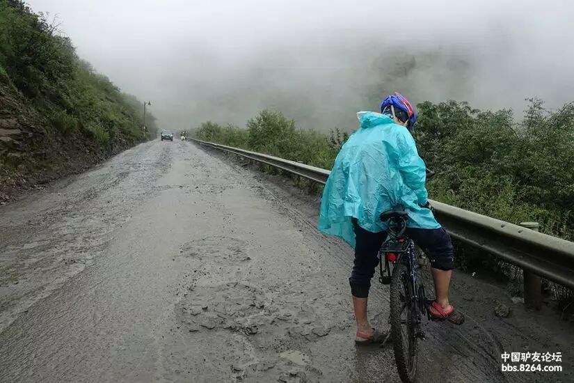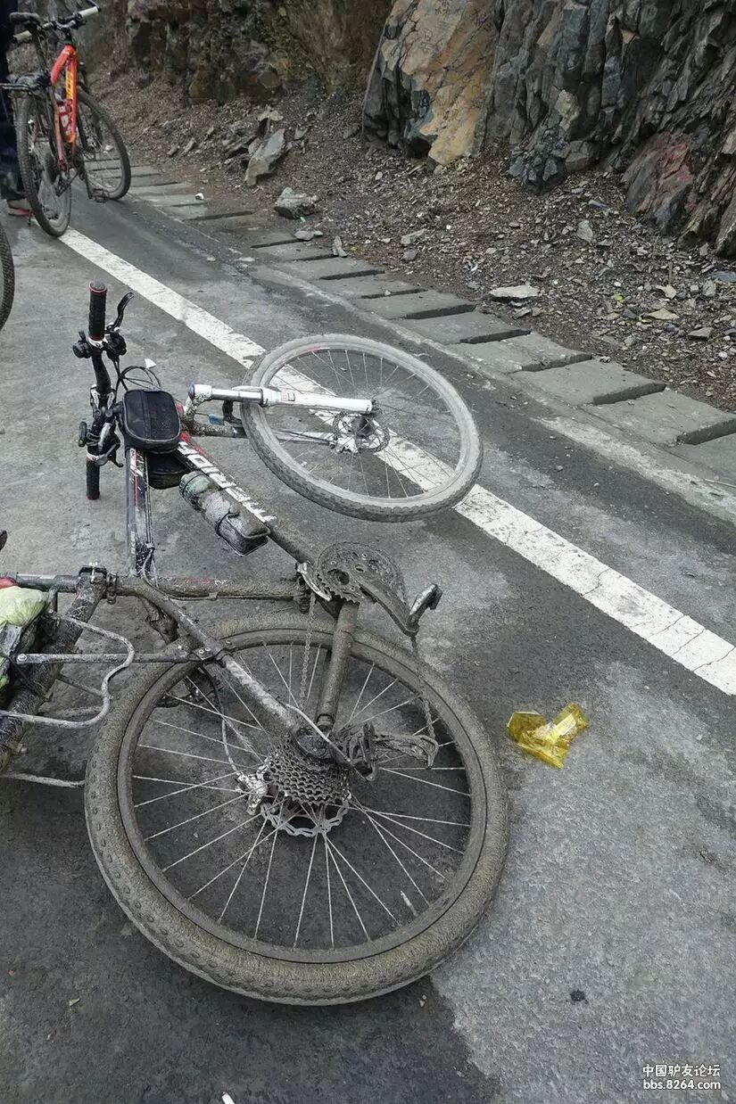 水与泥简直就是一对孪生兄弟,你中有我,我离不开你!单车顽强的与天气抗争!洞洞鞋没了色彩,脚也磨出了血泡!