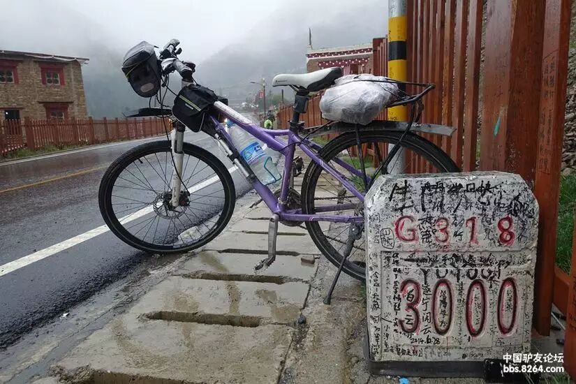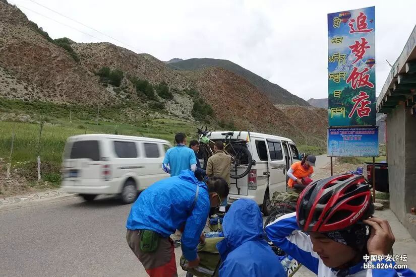 7月15日 第七天 红龙乡——理塘(38公里) 高度警惕中,渡过了海拔4100米的夜晚!钻进一股羊屎味的被子中,加上2天没洗澡又让雨雪浇透好几回,那真是百味齐放,搁谁谁都受不了!嗅觉遭受强烈刺激的同时,视觉也一同占个光! 在的我有些倦了,像一朵被风折断的野花!那么,是什么力量支撑我继续走下去?——梦想?热爱?坚持?——我的一切都在318里! 你的泪水,我懂。我的泪水,你懂!泪水,是最难渡过的河流! 雨,一直不停!相克宗的夜里,我梦到自己穿上了干爽的衣衫! 7月14日 第六天 相克宗——红龙乡(81公里) 昨日的噩梦骑行,吓退了部分骑友,又有一些骑友理智的选择了搭车!清晨的客栈便迎来了拉脚的司机,这服务太到位了!