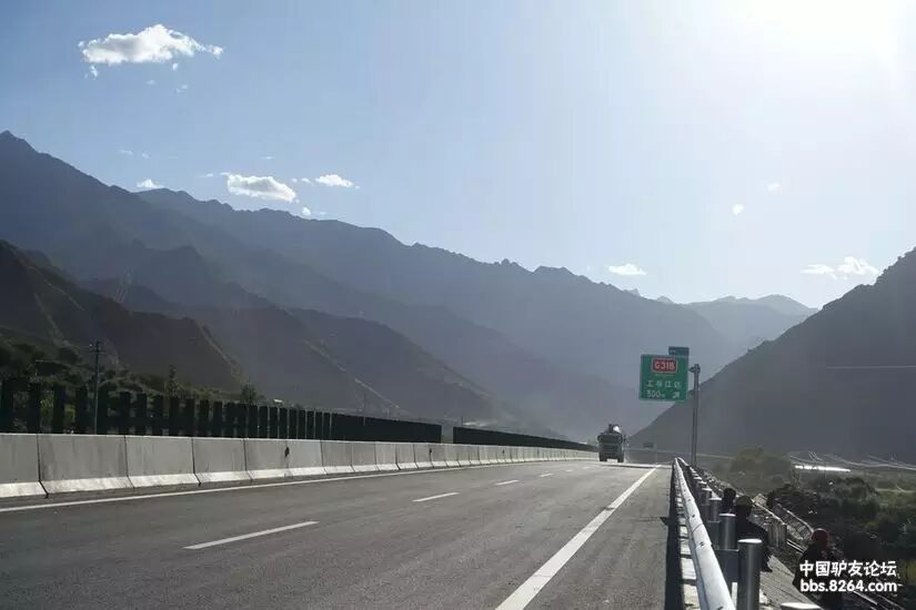 | 正在施工的林拉高速,已经差不多了。攻略上说这段自行车能通行,于是我们毫不犹豫的选择上了高速! |