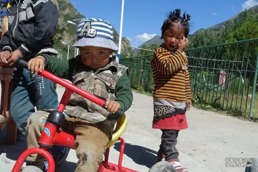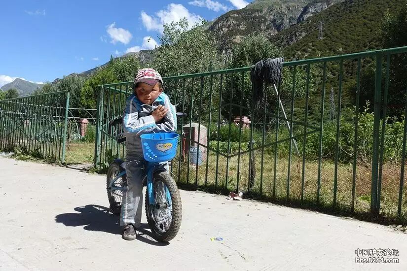 看着我的打扮,小男孩好像要跟我比划比划。 我看明白了他的意图,就跟他一起骑了几十米!