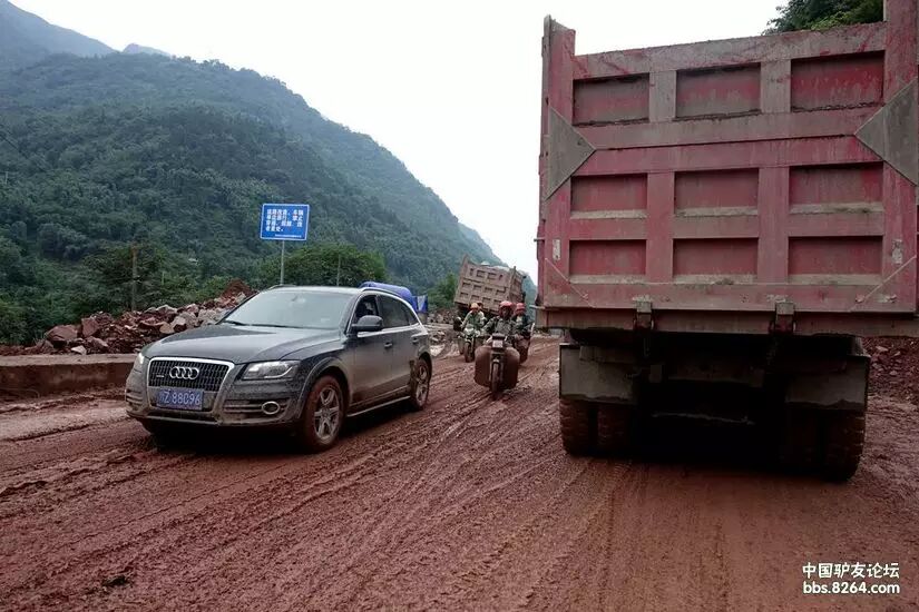 接着就是十几公里的排龙天险,烂路,陡坡,施工。塌方泥石流,是家常便饭。