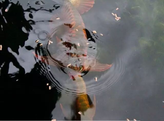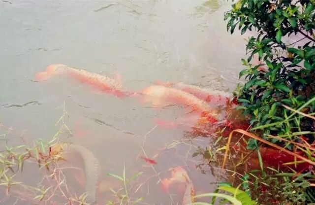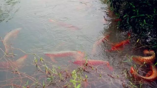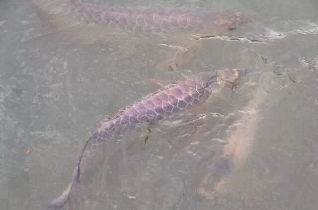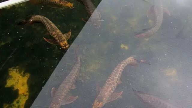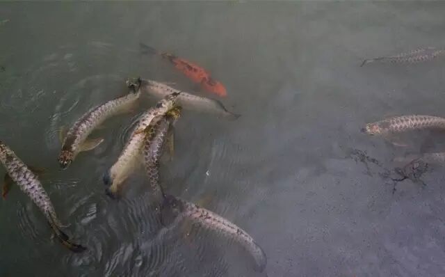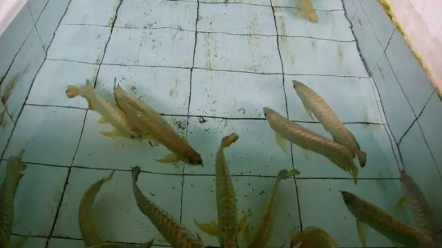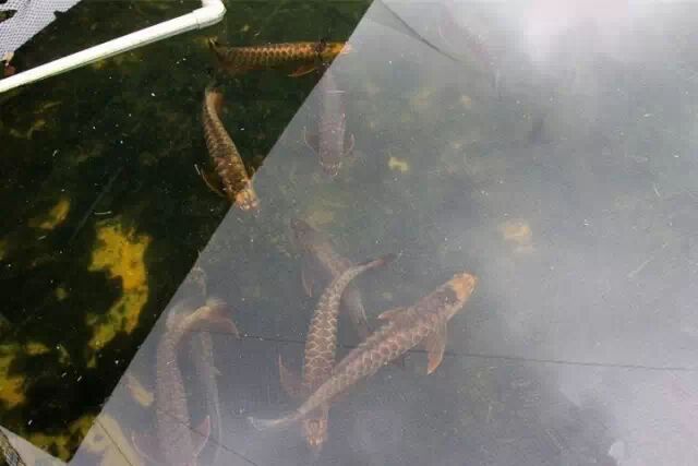 渔场阳光照射下龙鱼的美艳色彩。雨季时到渔场时常常听到渔场的工作人员说,“这段时间下雨,要是出几天太阳,全都红到怕人”。阳光的晒色作用至关重要。