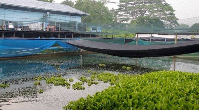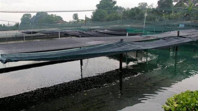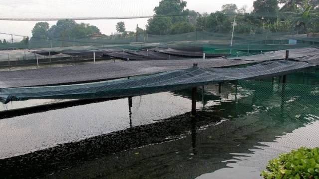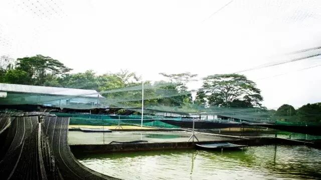 为避免太阳持续暴晒造成水温过高,渔场搭设的这样布。即使在遮阳布下,水草的生长速度依然惊人,阳光的照度在赤道地区非常强烈。