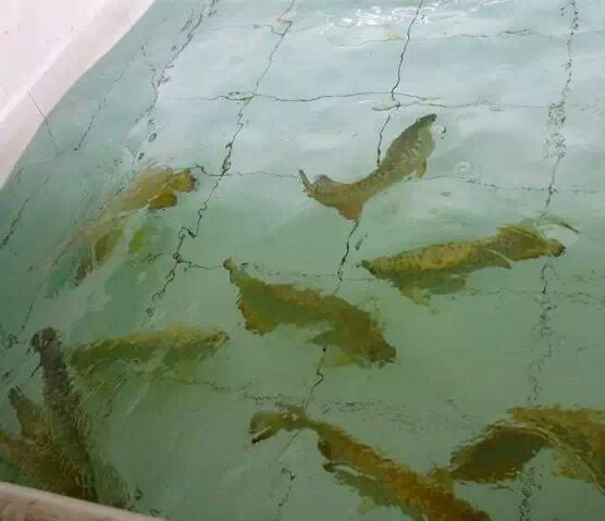 以上说了这么多,就是想通过我们在原产地的见闻告诉大家,龙鱼在热带地区的鱼池里晒到的太阳,绝对比通常绝大多数家用鱼缸的人工光源下接受的光照多得多,光谱也更是纯天然的阳光,对生物成长发色和繁殖的促进作用,比之普通人工光源不可以道里计。