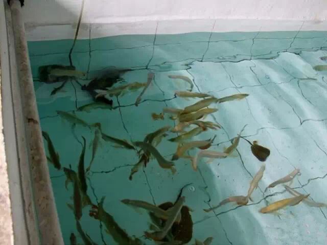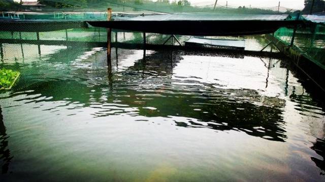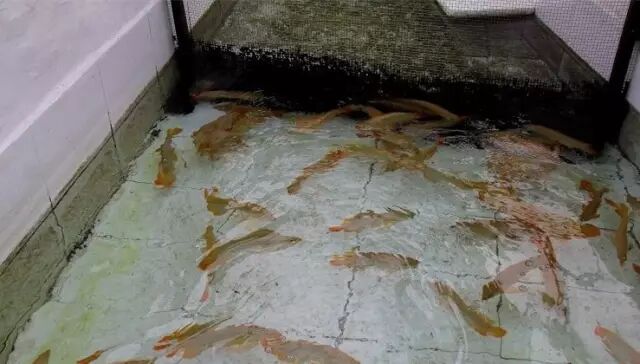 渔场的露天鱼池,热带阳光下,水深约150cm,照度充分。为避免阳光暴晒,还需要适度遮荫。