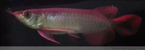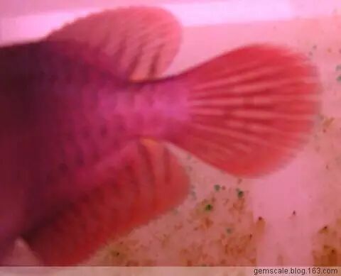 还有一点,就是这样的红龙往往经过黑水的处理,使分辨更不容易,比如同样上边那条鱼,在黑水里饲养10天后转入白缸的照片: