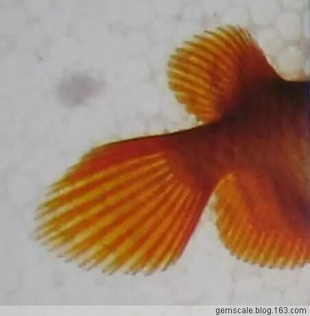 最后很重要的一点就是尾鳍花纹的区分。大体来说,正统红龙在幼鱼阶段尾鳍也会呈现如同虎斑一般的花纹,因为品系的区分有些会连通成为状似虎斑,在尾鳍形成连贯的黑影弧线;有的只是一些花样的黑影斑点。但总是会见到这样的表现:
