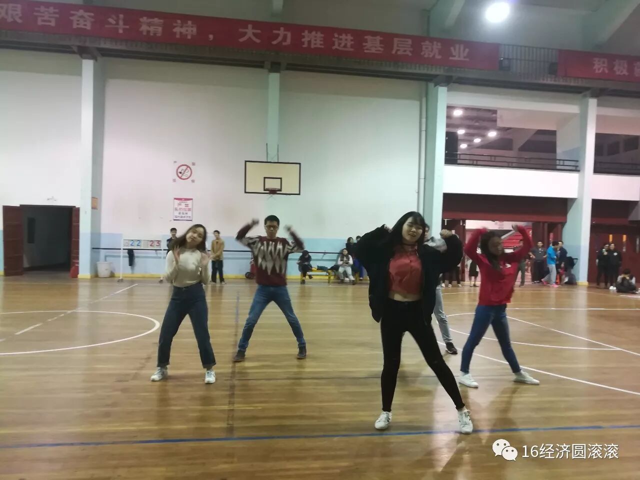 中场休息,由16级经济人力工商班组成的啦啦队上场,一段韩舞为队伍加油助威,联队士气大涨。