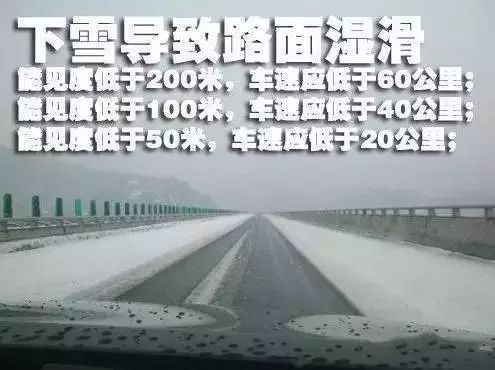 雪天能见度低,眼睛能够看见的距离近,车速须与视距成正比,请保持低速行驶。转弯时提前降速,适当加大转弯半径。发生侧滑时,切忌紧急制动。