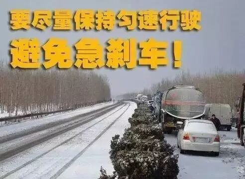 雪天路滑,突然踩刹车,突然加速,突然减速,突然转动方向,都可能引起侧滑。所以雪天走高速公路要注意匀速行驶,掌稳方向,保持好车辆的平顺性。切勿频繁超车,必须变更车道超车时,注意观察欲变更车道前后车辆的距离,确认安全后再变道超车。