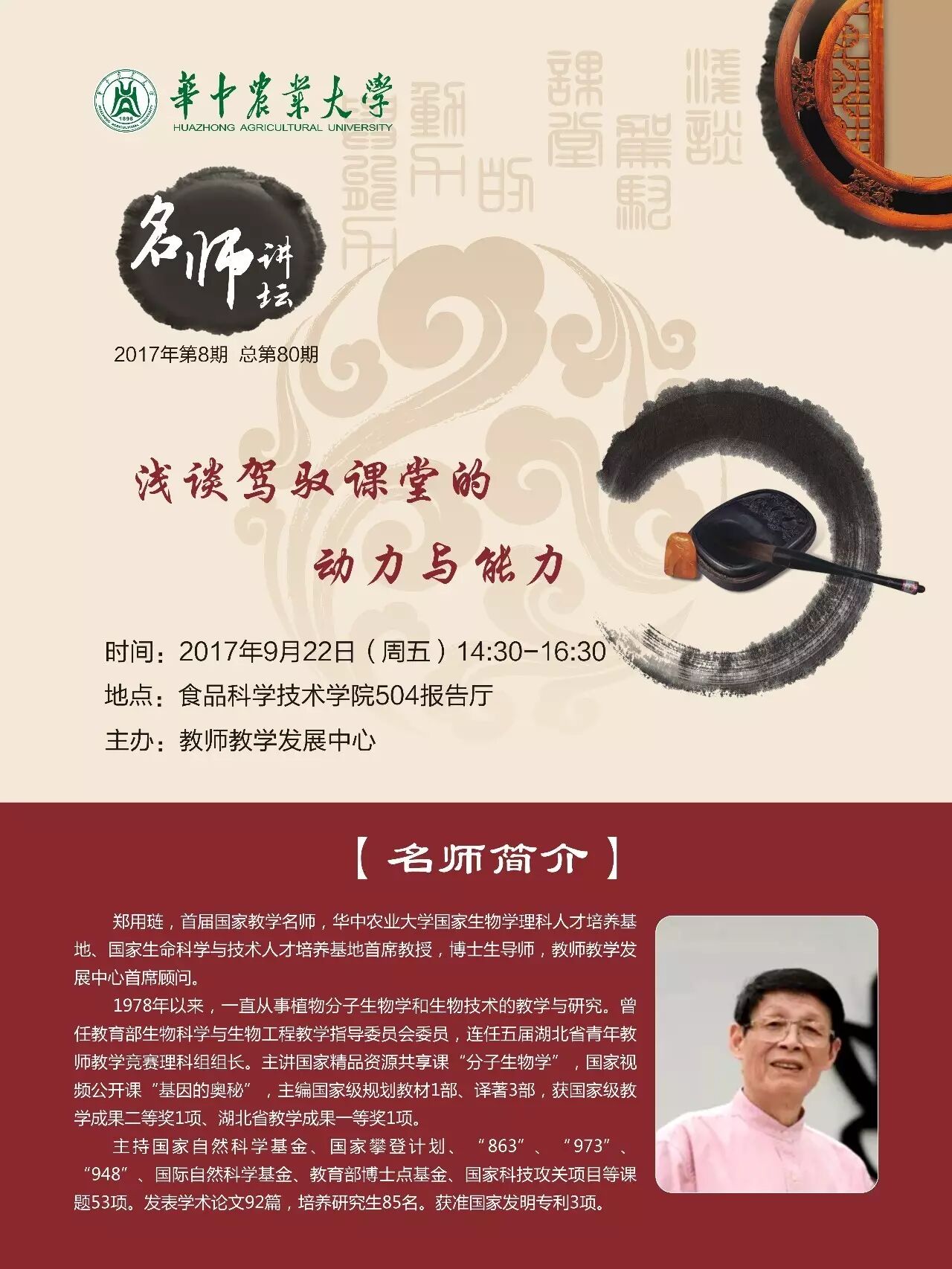 郑用琏,首届国家教学名师,华中农业大学国家生物学理科人才培养基地、国家生命科学与技术人才培养基地首席教授,博士生导师,教师教学发展中心首席顾问。