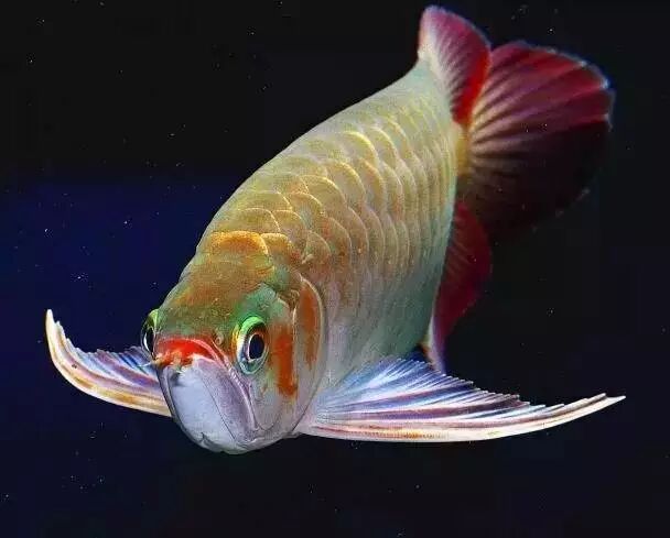 1、过背金龙 产于马来西亚阿罗邦苏水域,其最大特征为尾、臀、背鳍上的珠 鳞及全身鳞片均有金属光泽,金色会越过墨绿色的背部而使全身呈现金亮;鳞片呈圆型,大部分为鹅黄色或 黄金色。底色有多种变化,如蓝,金,紫,白等)。头为上下额均长的流线型炮弹头