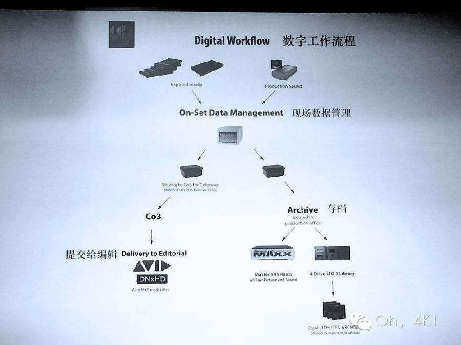 主要拍摄机型是RED EPIC 3D。存储方面,准备2份LTO5以及SAS Raids(64TB)