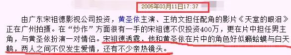 不过童鞋们放心,黄圣依和宋祖德的“缘分”只持续了一部电影,到了2006年4月,她就已经与杨子因为牵手走出机场被拍而暴露在公众面前。当然两个人还是不承认彼此恋爱的关系,但是N多爆料都集中在了2006年,说两个人的感情纯洁如白莲花,估计没人会相信吧?