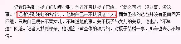 然后到了2007年,在两个人的三线绯闻炒了差不多1年的时候,突然有网友爆料说杨子其实已经结婚了。他的老婆不是圈里人,而是杨子家族集团的一名经理。