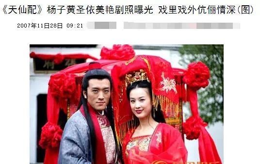 当然,杨子是拒绝承认的,不能网友说他结婚了,他就结婚了,毕竟年度雷剧《天仙配》,是在2007年底才上映的。黄圣依好像中了“投资人一定要和她演对手戏”的魔咒,刚送走了宋祖德,就迎来了杨子。杨子在内地电视剧圈虽然作品不多,却还留下了一个脍炙人口的金句!