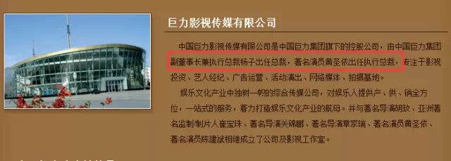 最后懂小姐再说说黄圣依和杨子的这个合作关系,2011年,黄圣依和杨子“分手”,自立门户成立了“巨力圣依”,不过还是在巨力集团之下,这个自立门户的水分还真是有点大。而且懂小姐搜索了一下巨力影视传媒有限公司,在公司介绍中,黄圣依还是执行总裁。