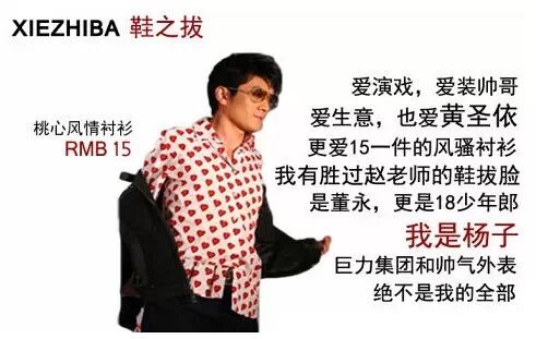 所以懂小姐才说黄圣依真是高开低走界的典范啊!最起码也是“星女郎”,最后却要在雷剧中磨练演技。而网友们,更是将恶搞发挥到了极致,天涯论坛还有专门为杨子成立的鞋拔教,这影响力在当年也是杠杠的。
