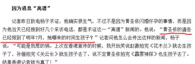 所以在这种情况下,黄圣依怎么可能承认自己和杨子的绯闻呢?然后在2011年,黄圣依新片《白蛇后传》上映的时候,黄圣依又被爆出怀孕的消息,而听到这个消息的样子是震怒的。