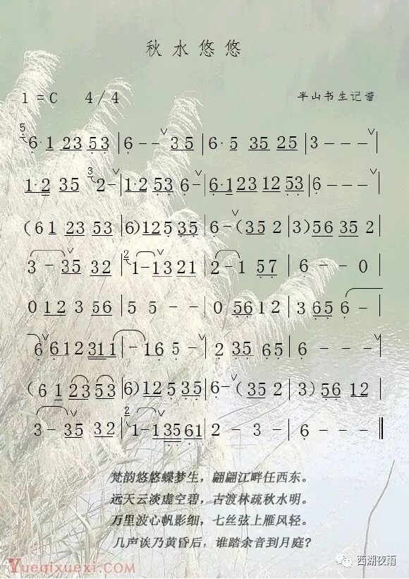 接下来《西湖夜雨》公众号会每期发布六个洞箫谱子,让你快速掌握你喜欢的谱子,节省你的宝贵时间,免去你到网上四处搜索之苦。