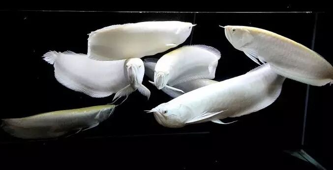 (1)白化龙鱼:龙鱼中由于基因突变而产生的白化品种。所谓白化品种就是由于生物体体内缺乏某种酶而导致不能合成黑色素,因此表现出白色的特征。这种白化鱼的特征是身体无色或透明,眼睛为红色。简单地说,这种鱼的主要特征就是红眼,水族界也称作真红眼,以区别下面介绍的白色品种。白化个体其实是一种遗传疾病,会造成个体怕光、体质弱、癌症等问题,极难存活。但在观赏鱼中,由于其洁白的颜色而深受人们喜爱,但这种鱼也很难饲养。白化龙鱼可以说是最正宗的白金龙,它可以是红龙、金龙、红尾金龙、青龙等任意一种的白化个体。由于白化,身体不再表现其他颜色,体形又类似,所以很难说清是什么鱼的白化种。但可以肯定的是,这种鱼的数量极其稀少,因此价值连城。据说在日本有2尾红龙的白化种,一尾已经死亡,只公布过另一尾的图片。
