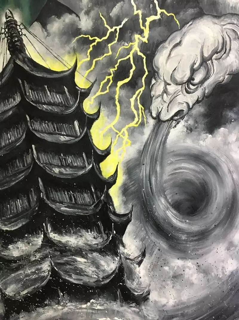 《水淹金山寺图》 320×200cm 布面丙烯 2015 局部