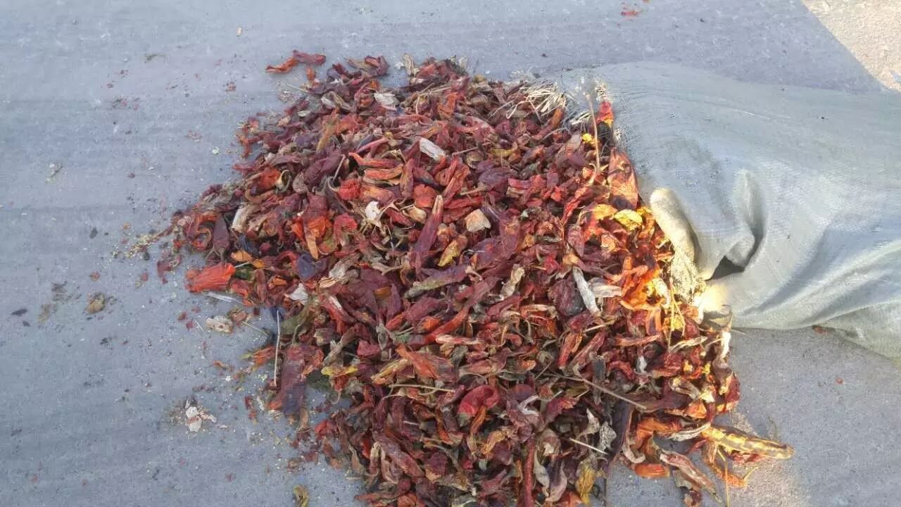 图二:新疆甜椒花皮,全干,红色部分比例较大,颜色较深,报价6400左右,如上图