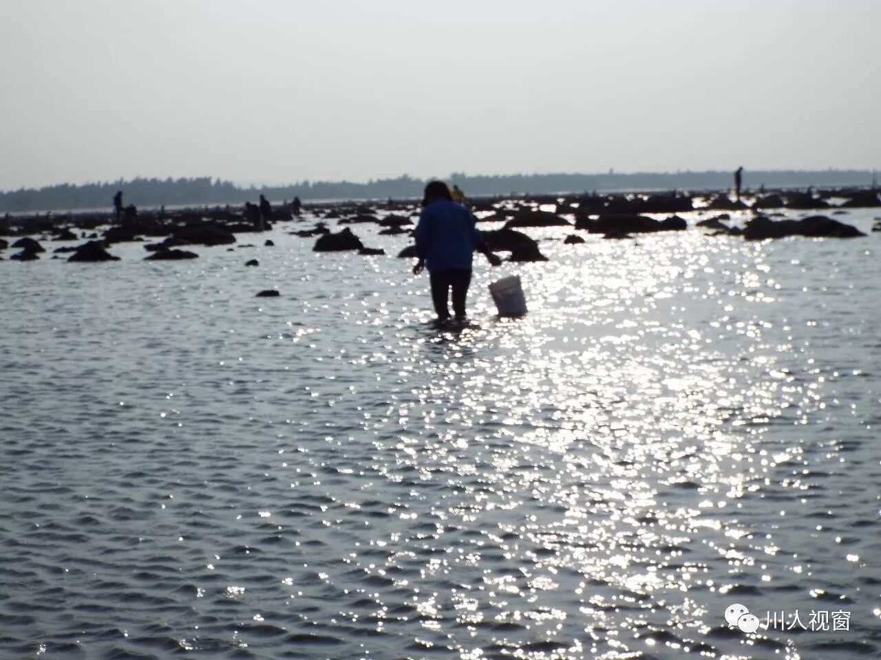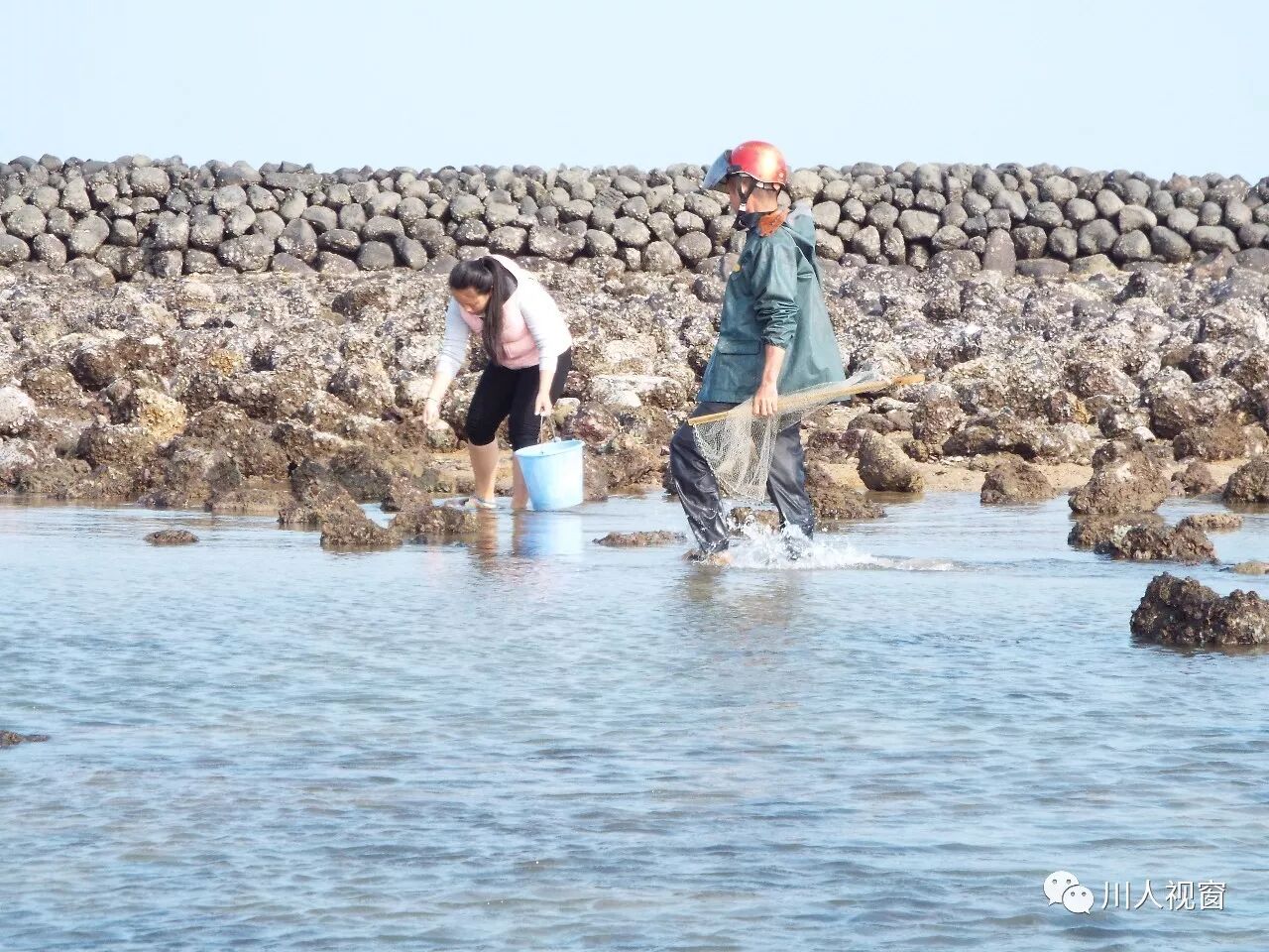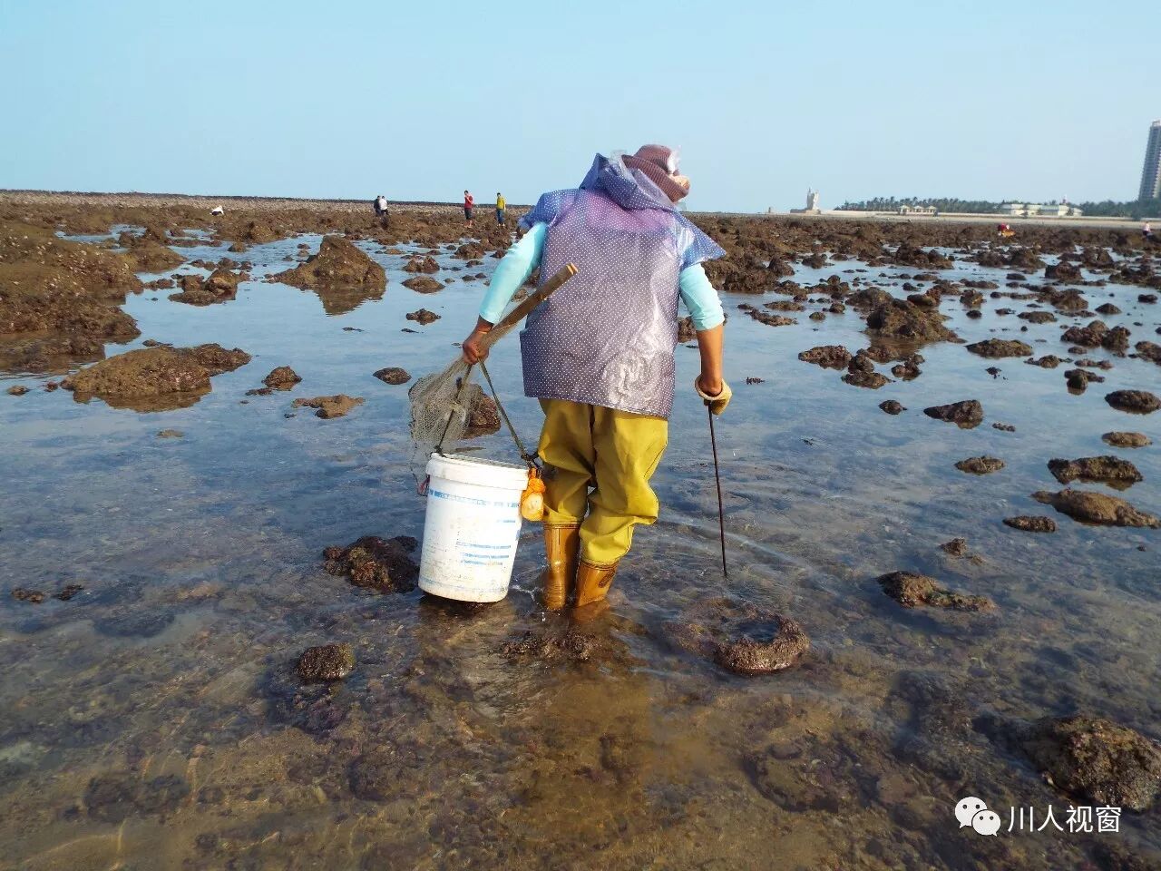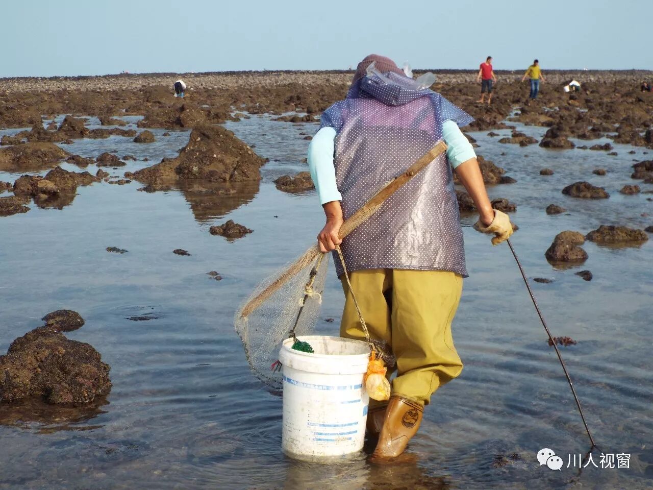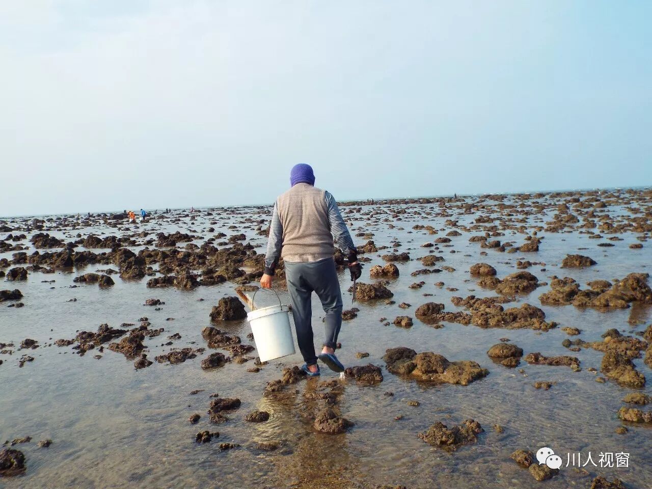 你看!妻赶海来夫提桶,妻唱夫随其乐融融!