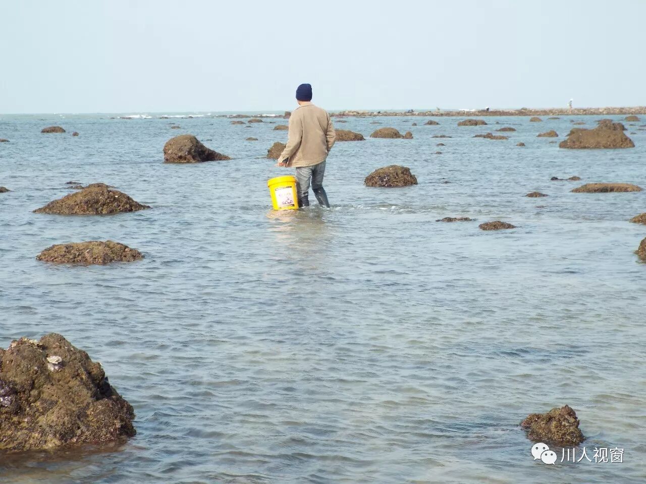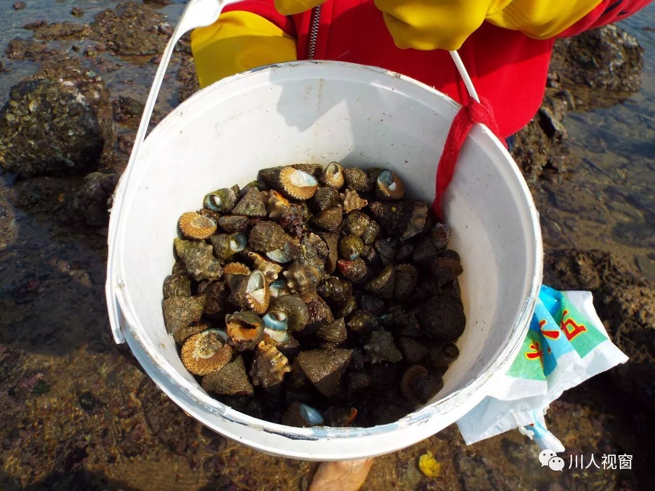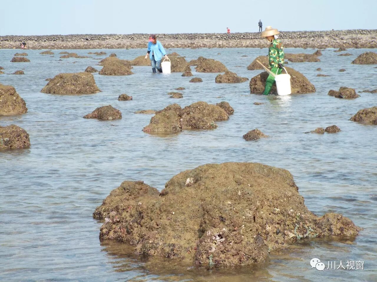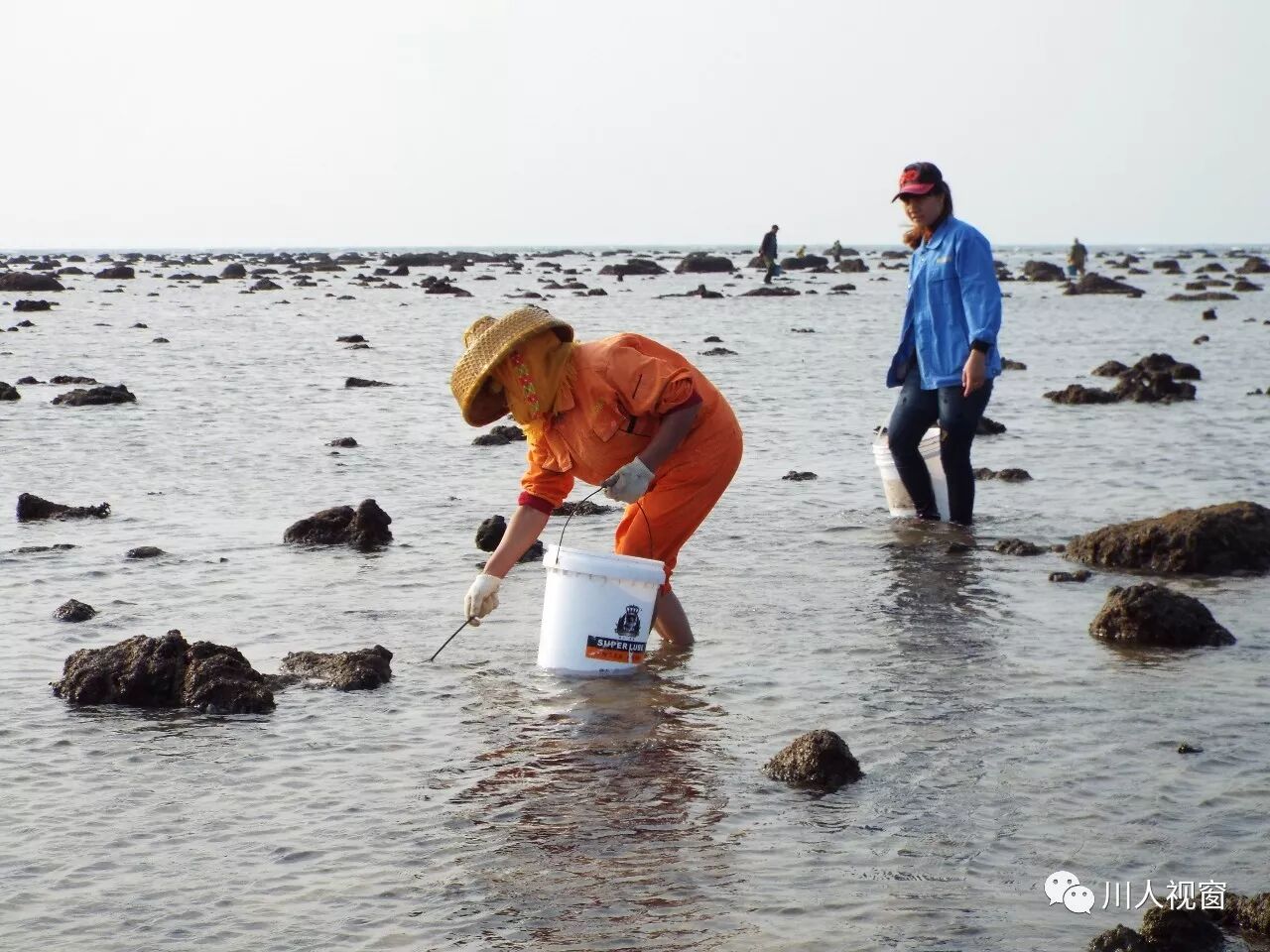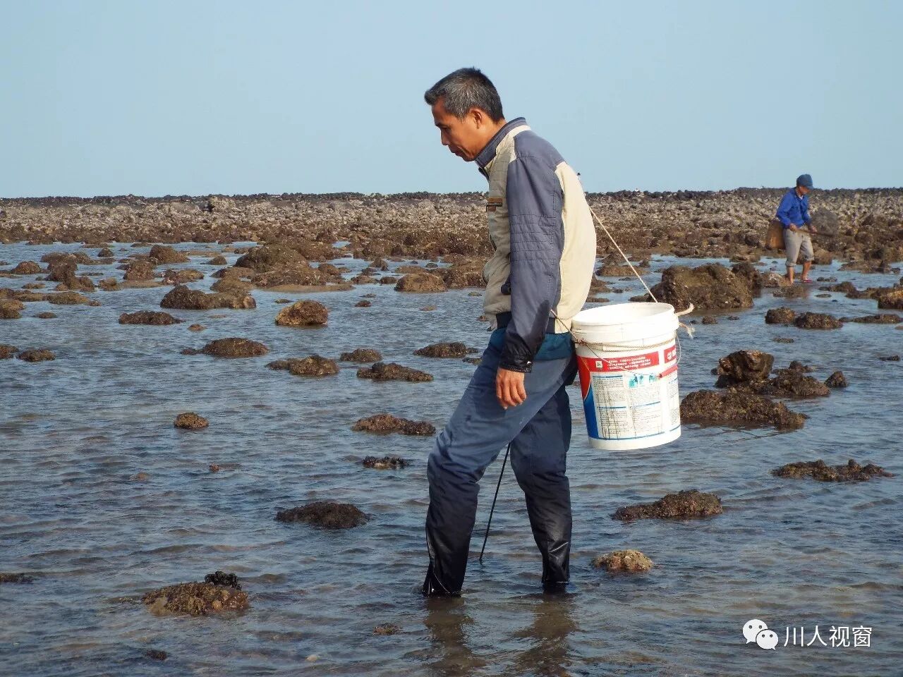 你看!妻赶海来夫提桶,妻唱夫随其乐融融!