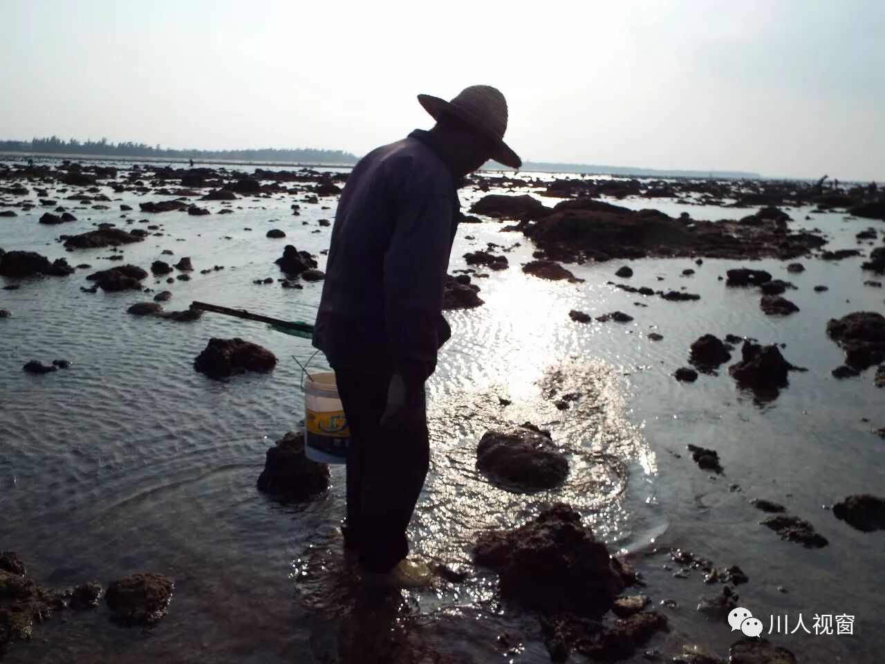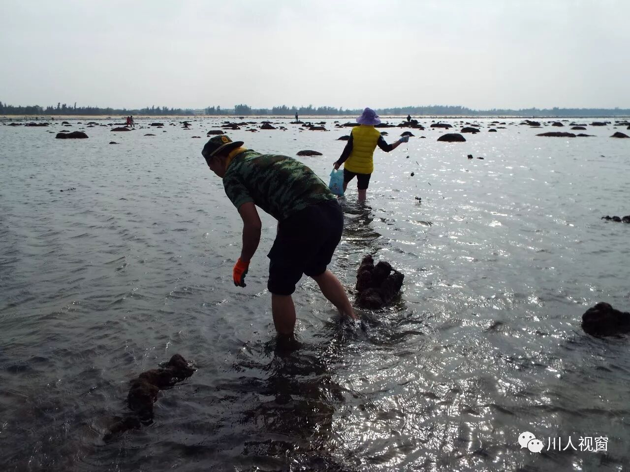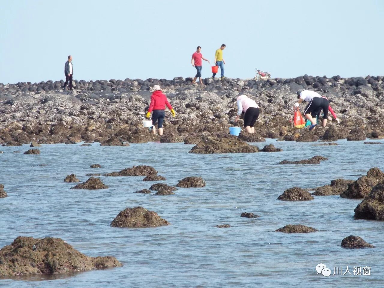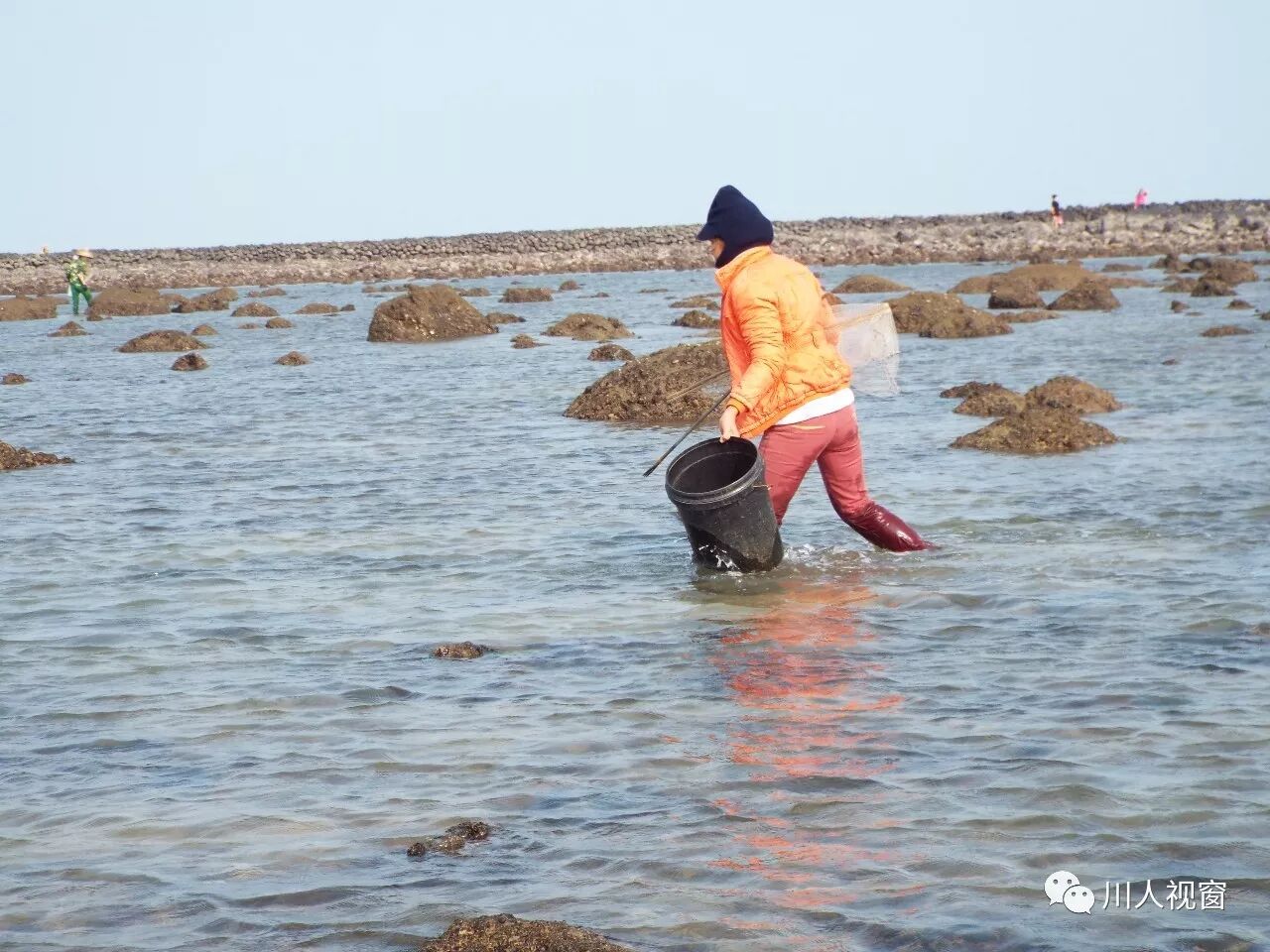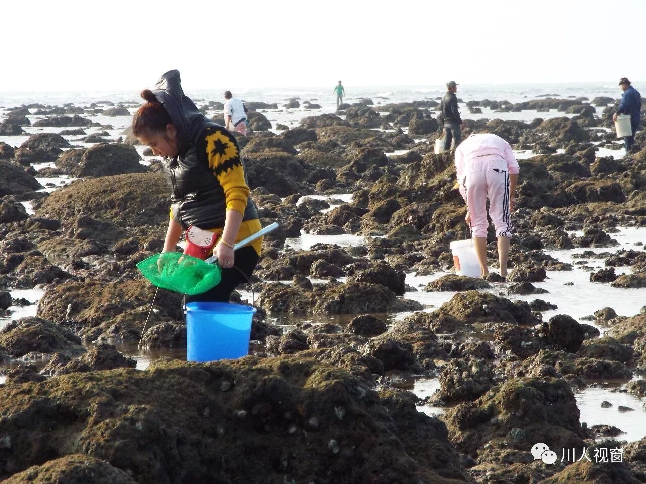 你看!妻赶海来夫提桶,妻唱夫随其乐融融!