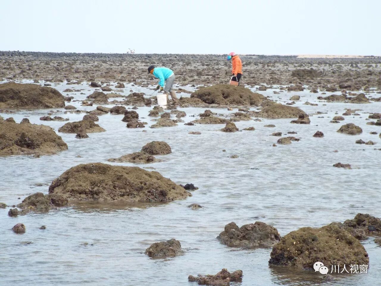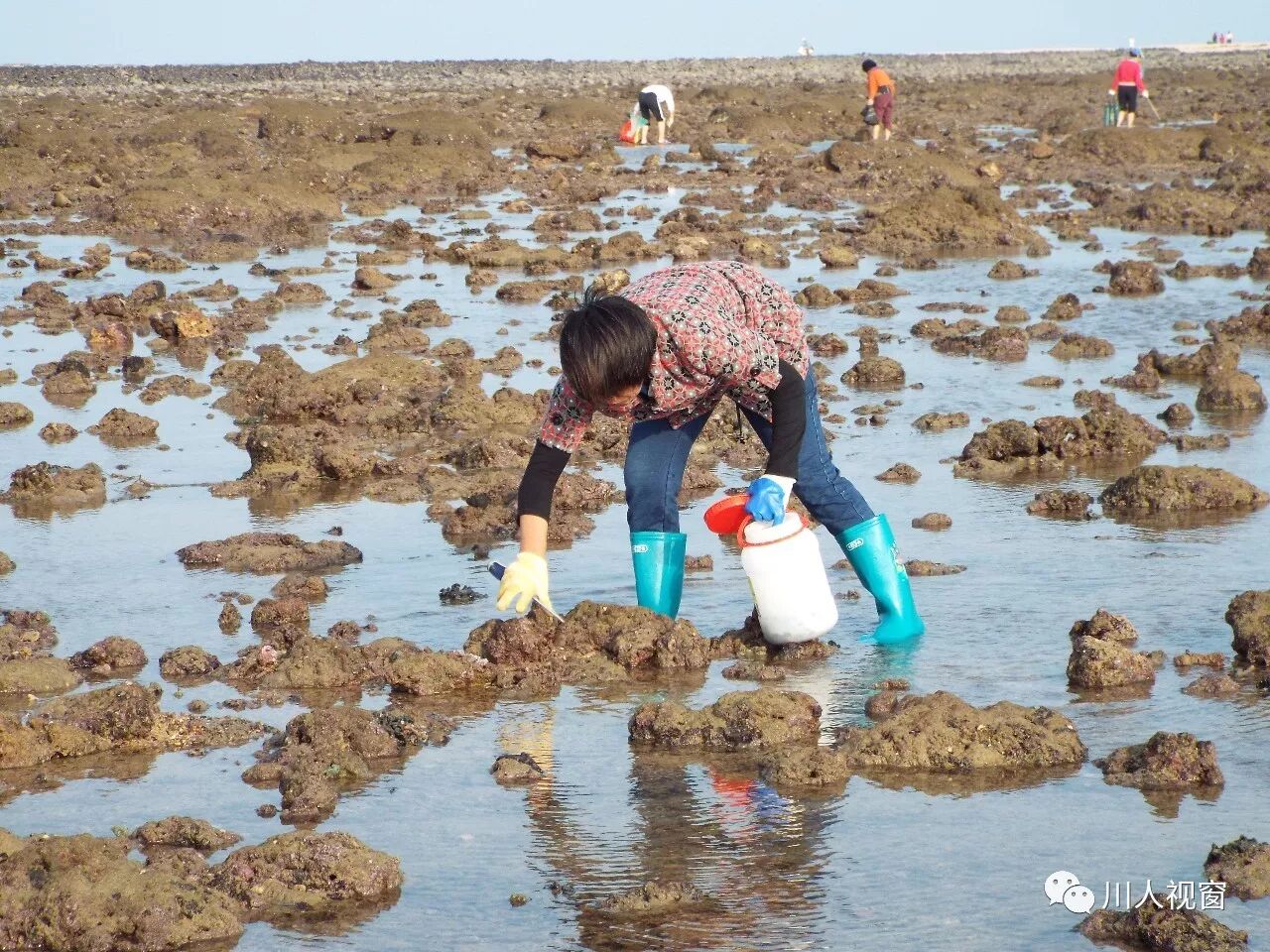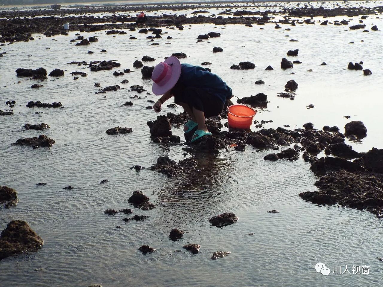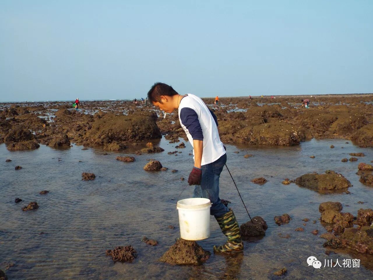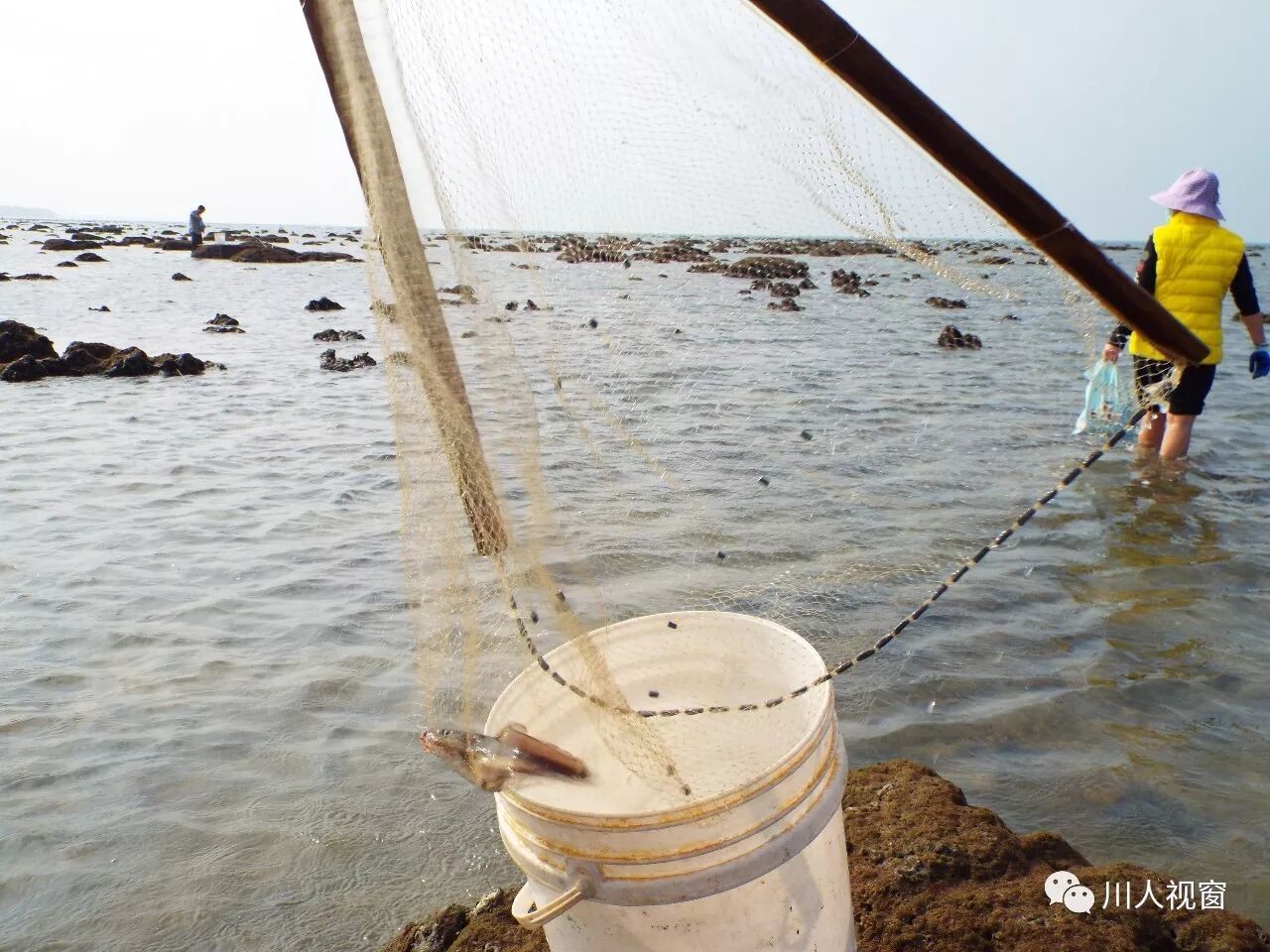 你看!妻赶海来夫提桶,妻唱夫随其乐融融!