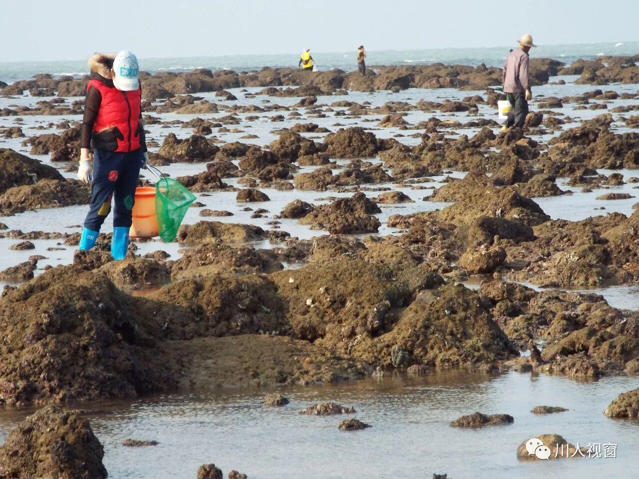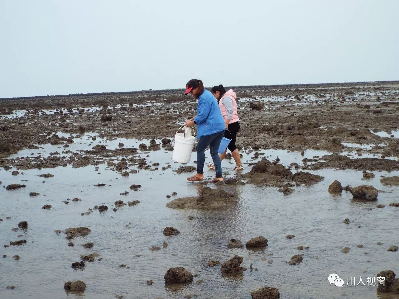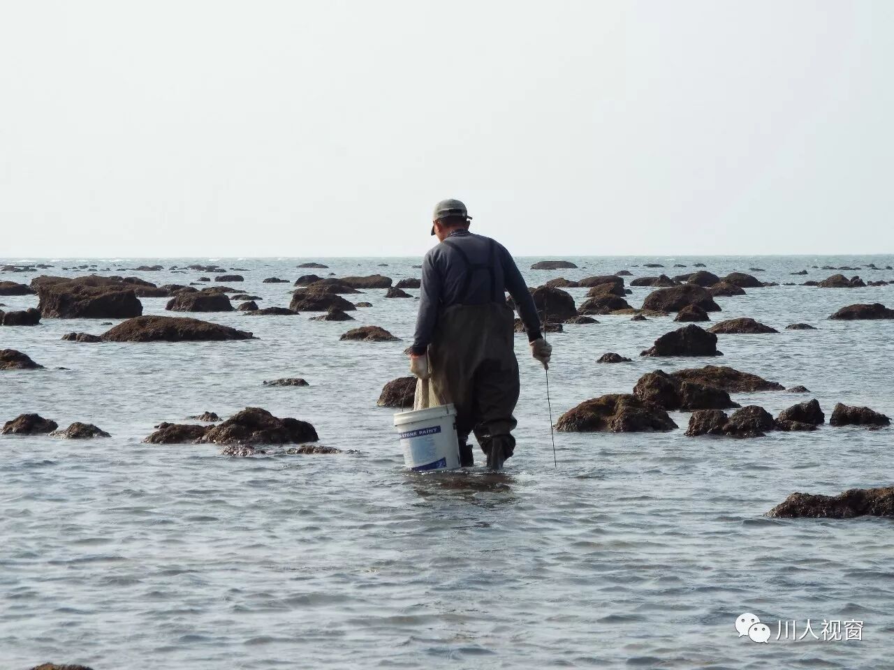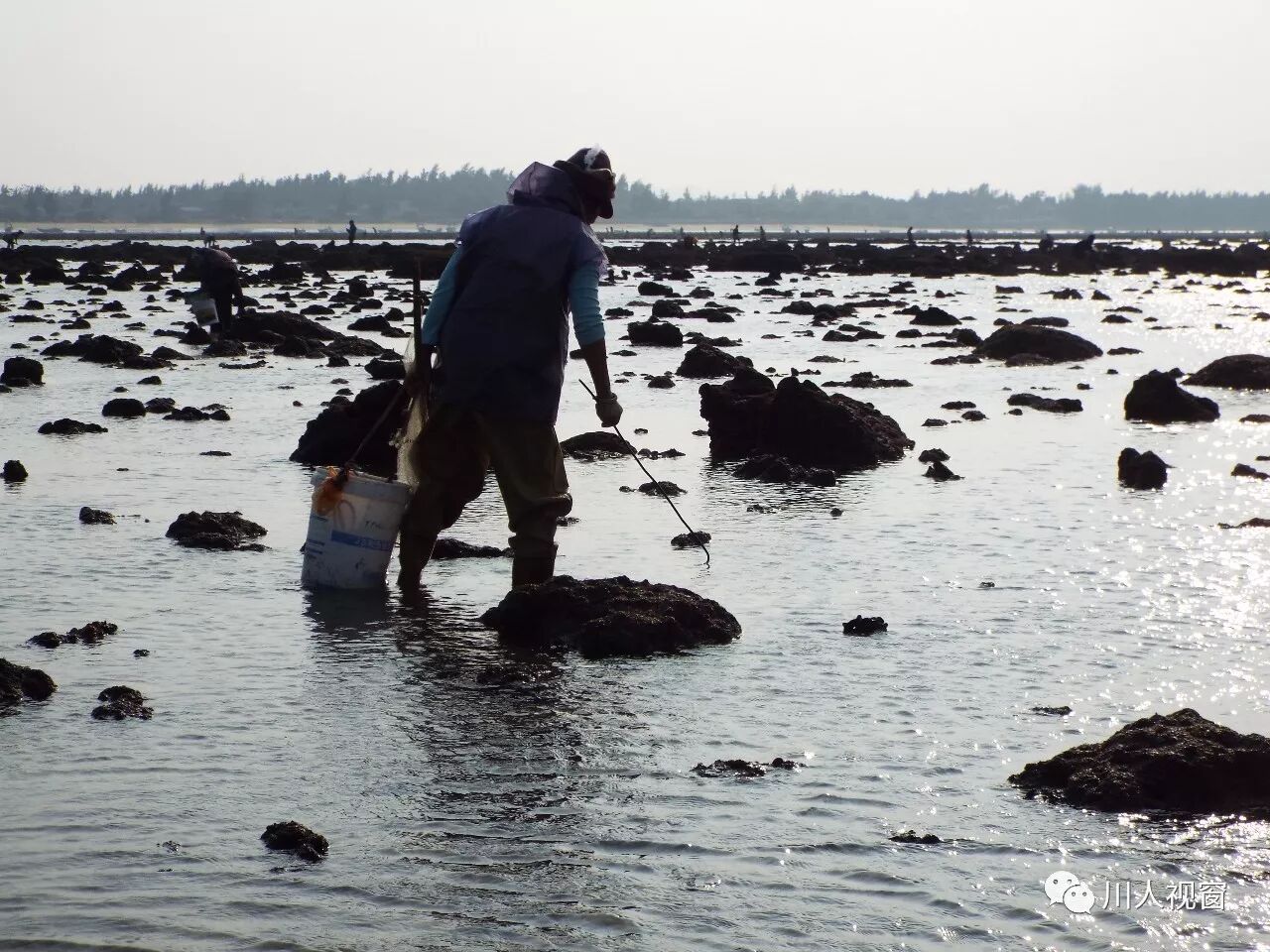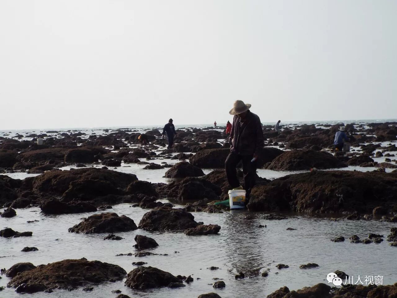 你看!妻赶海来夫提桶,妻唱夫随其乐融融!