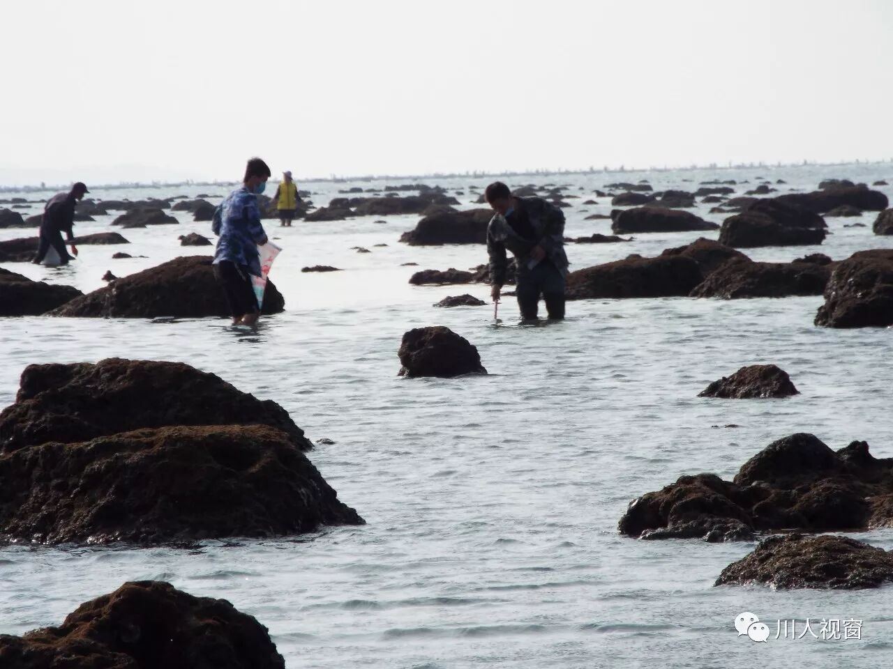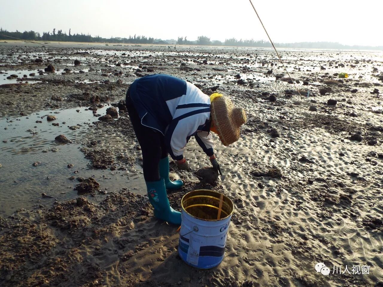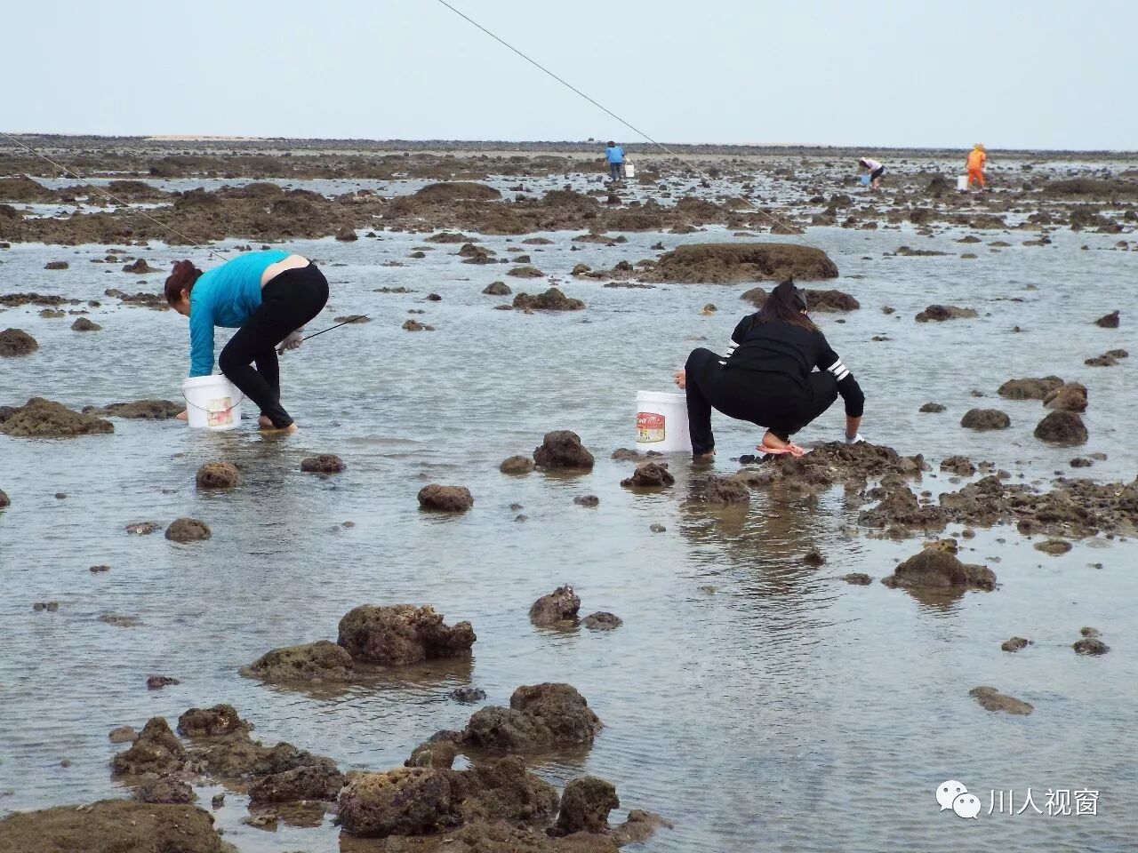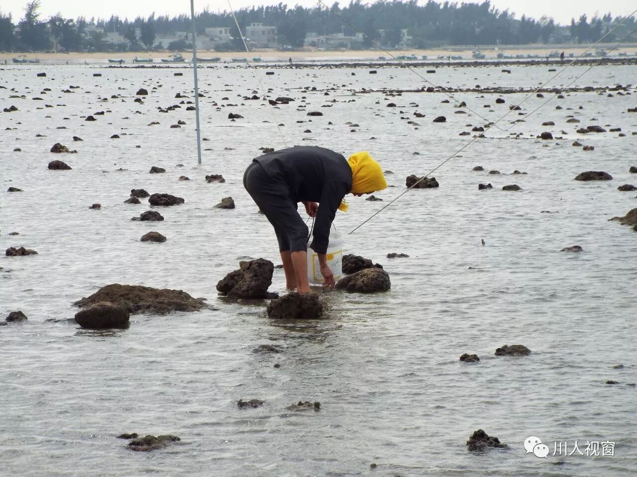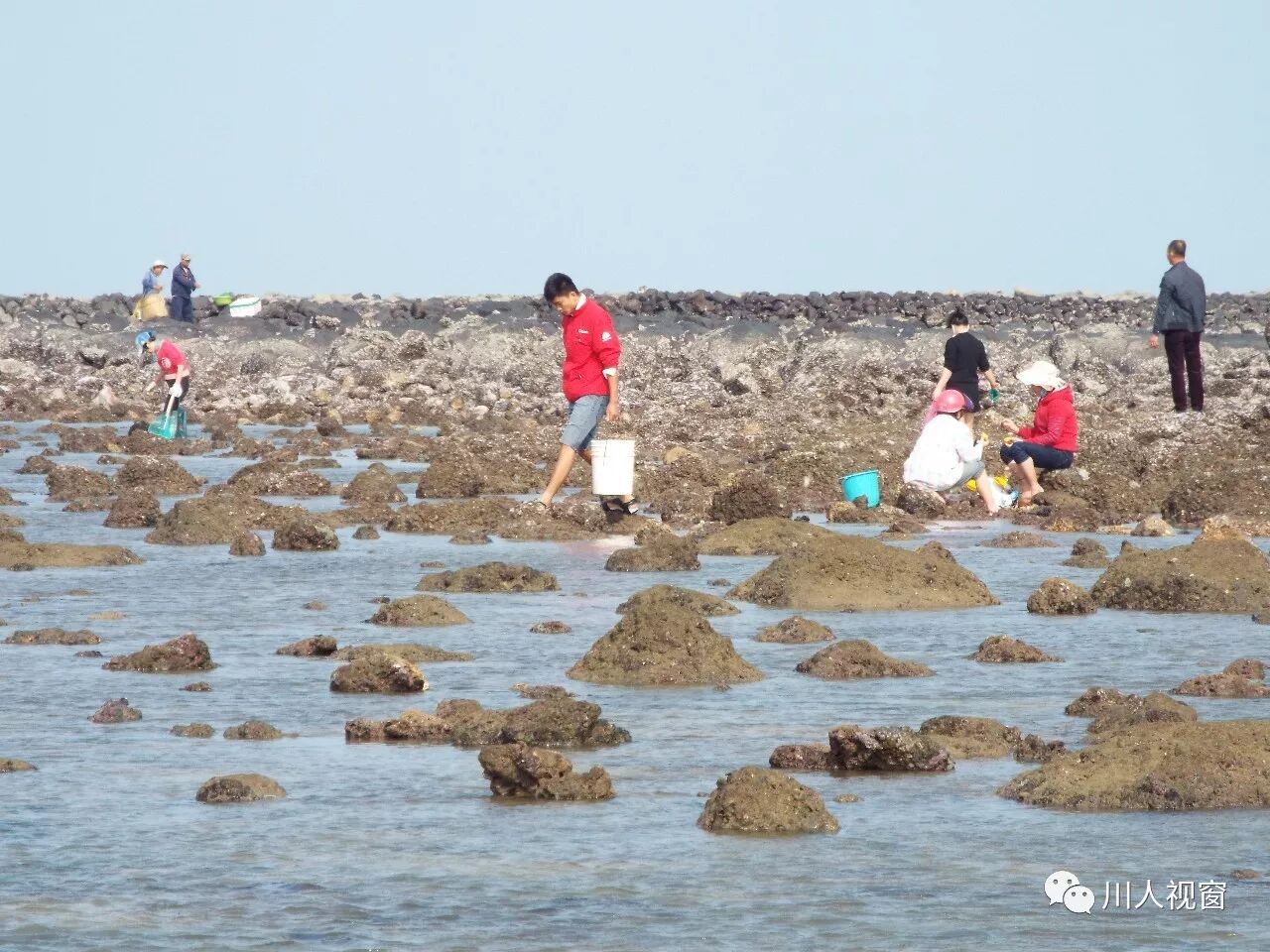 你看!妻赶海来夫提桶,妻唱夫随其乐融融!