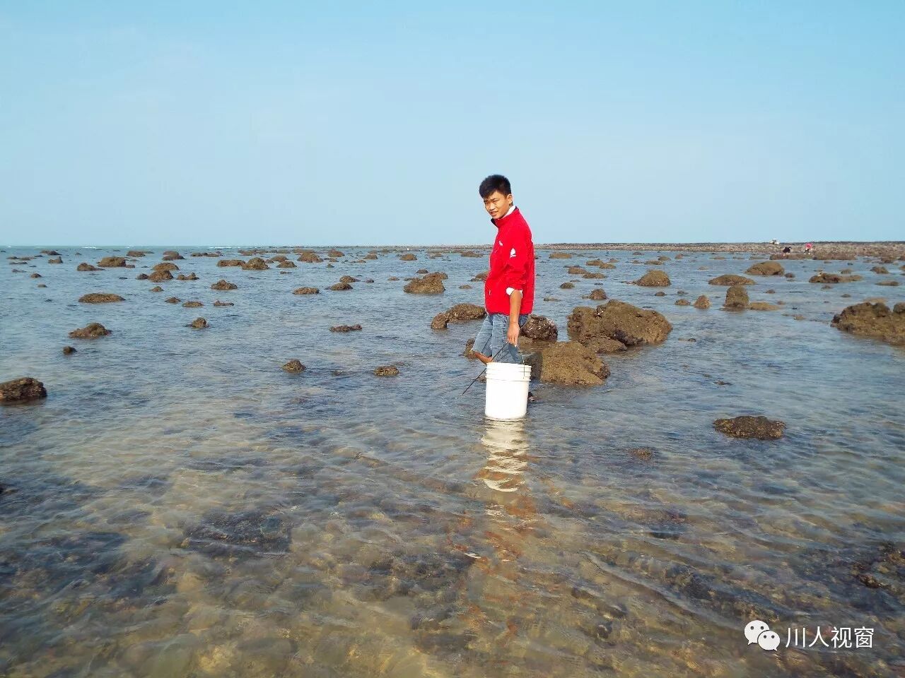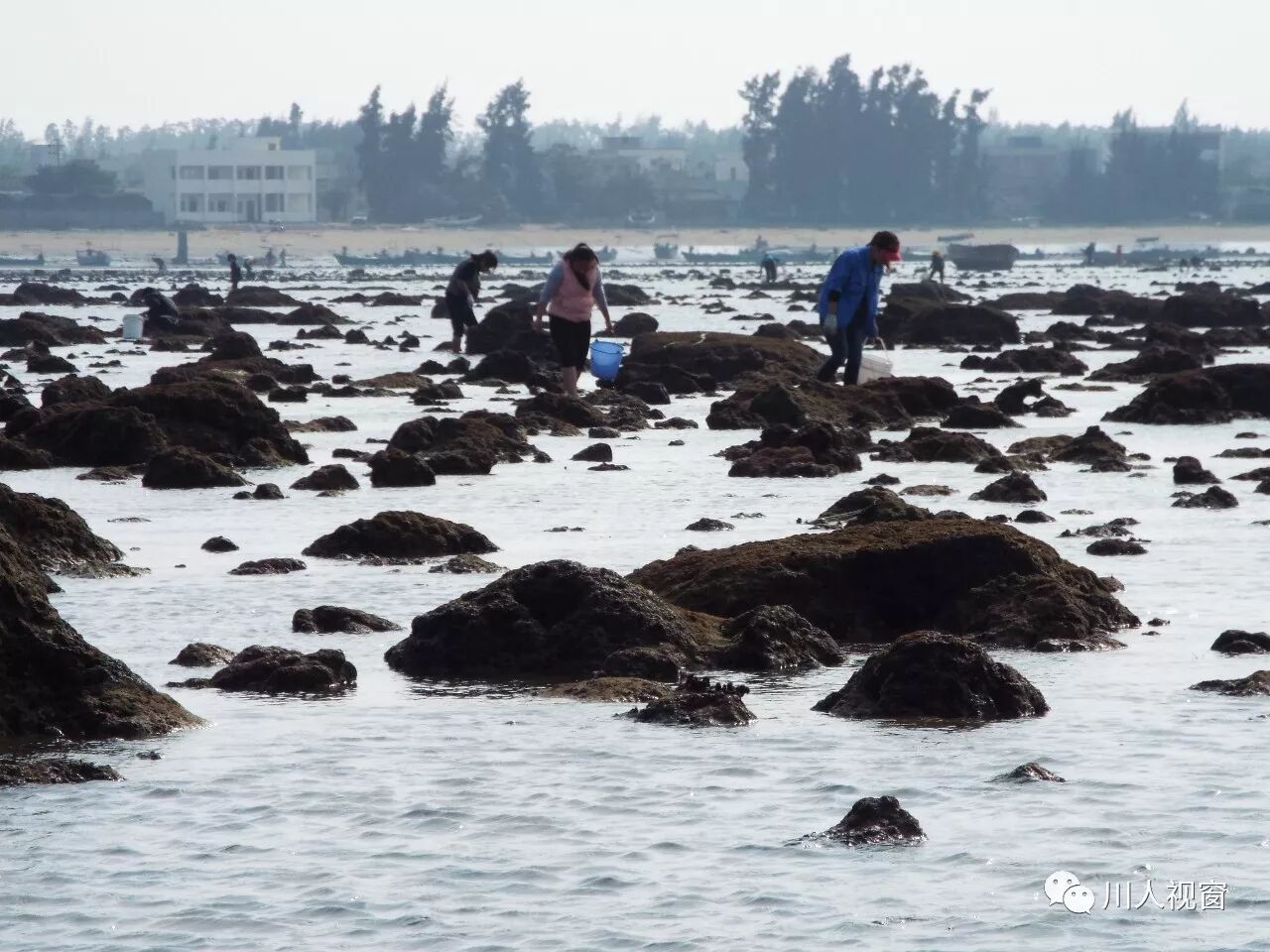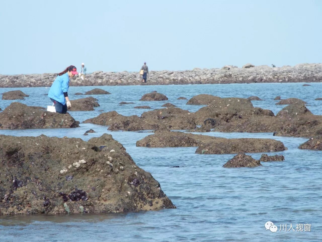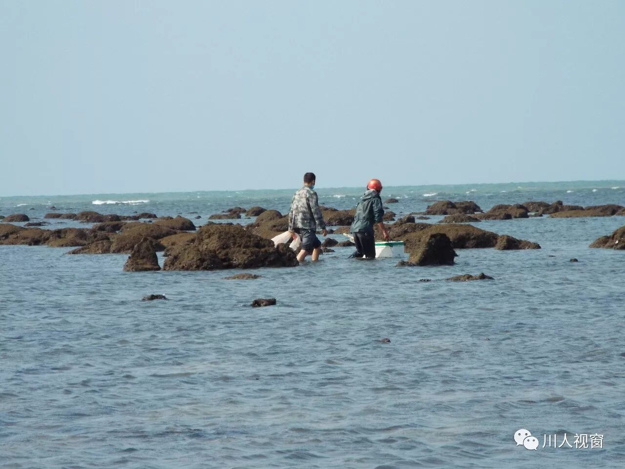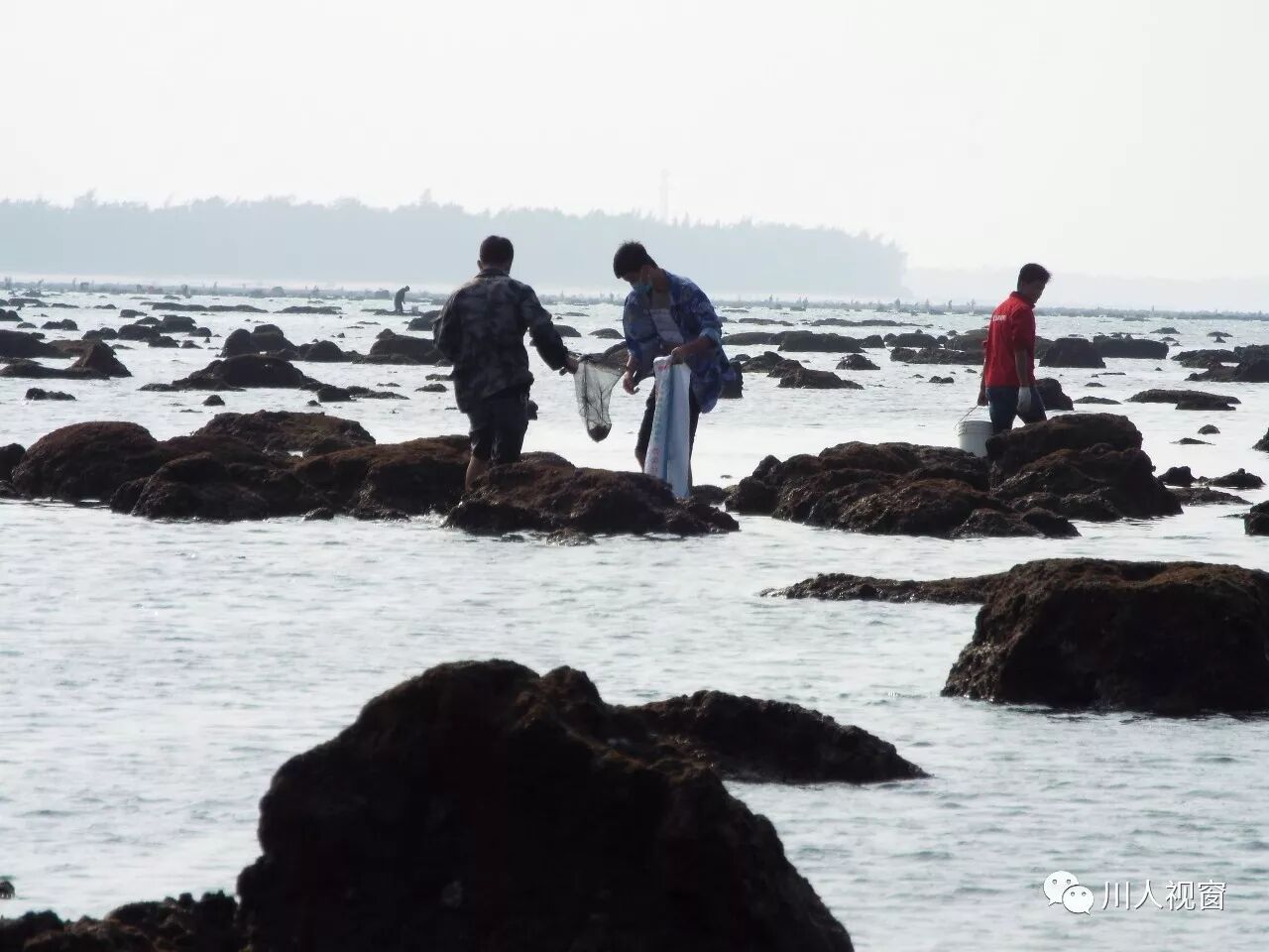 你看!妻赶海来夫提桶,妻唱夫随其乐融融!