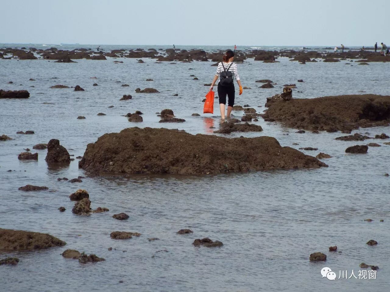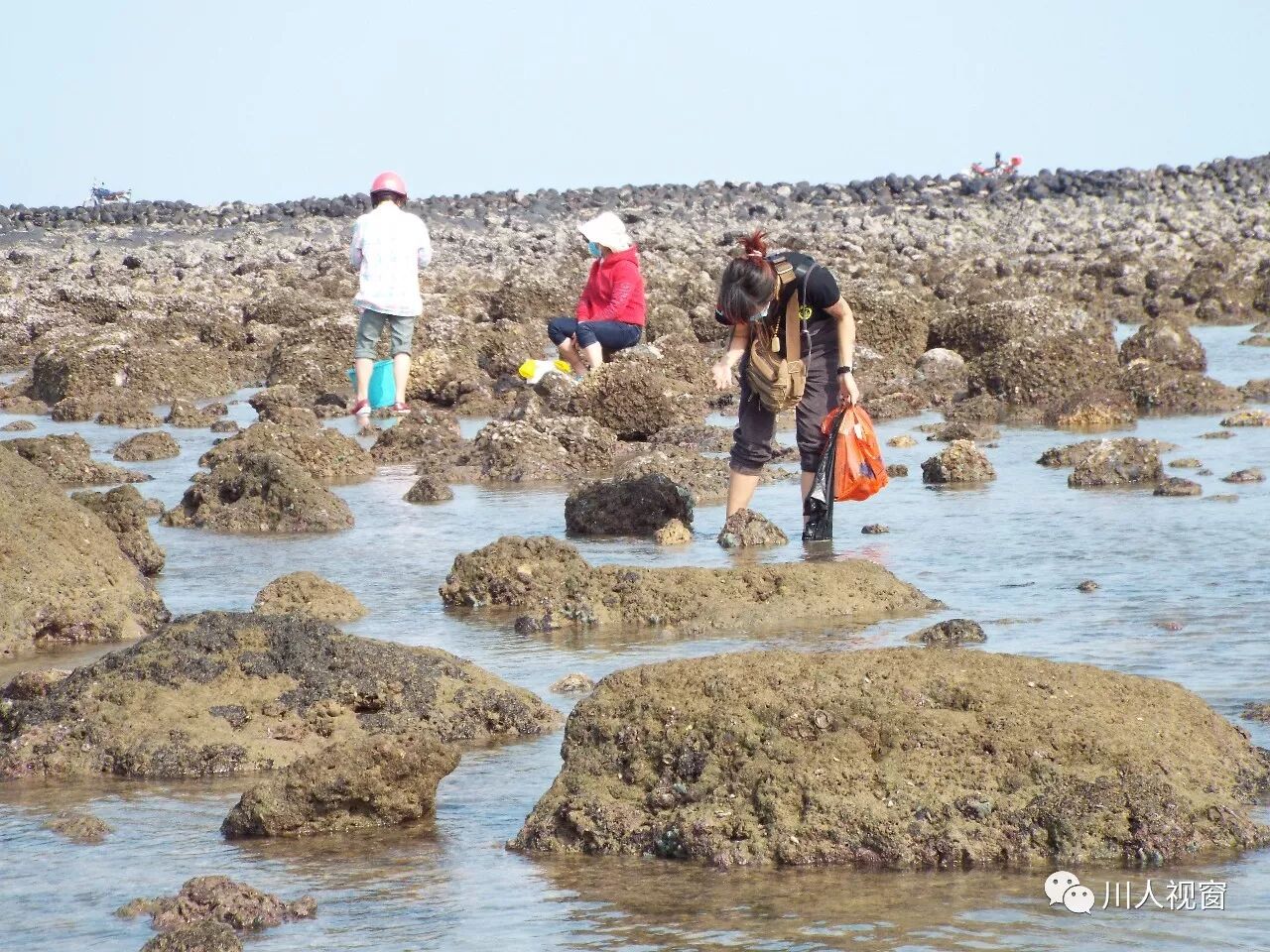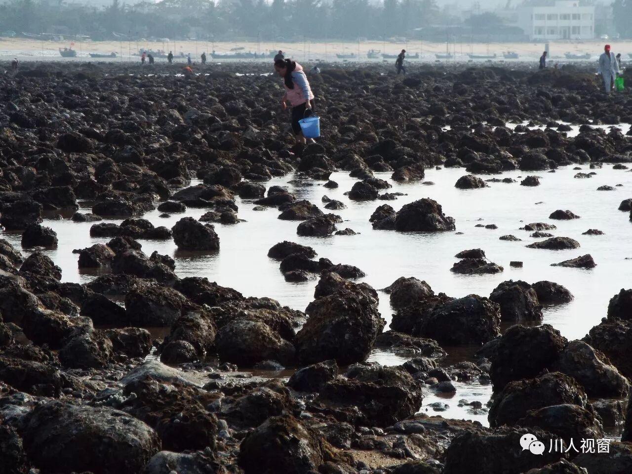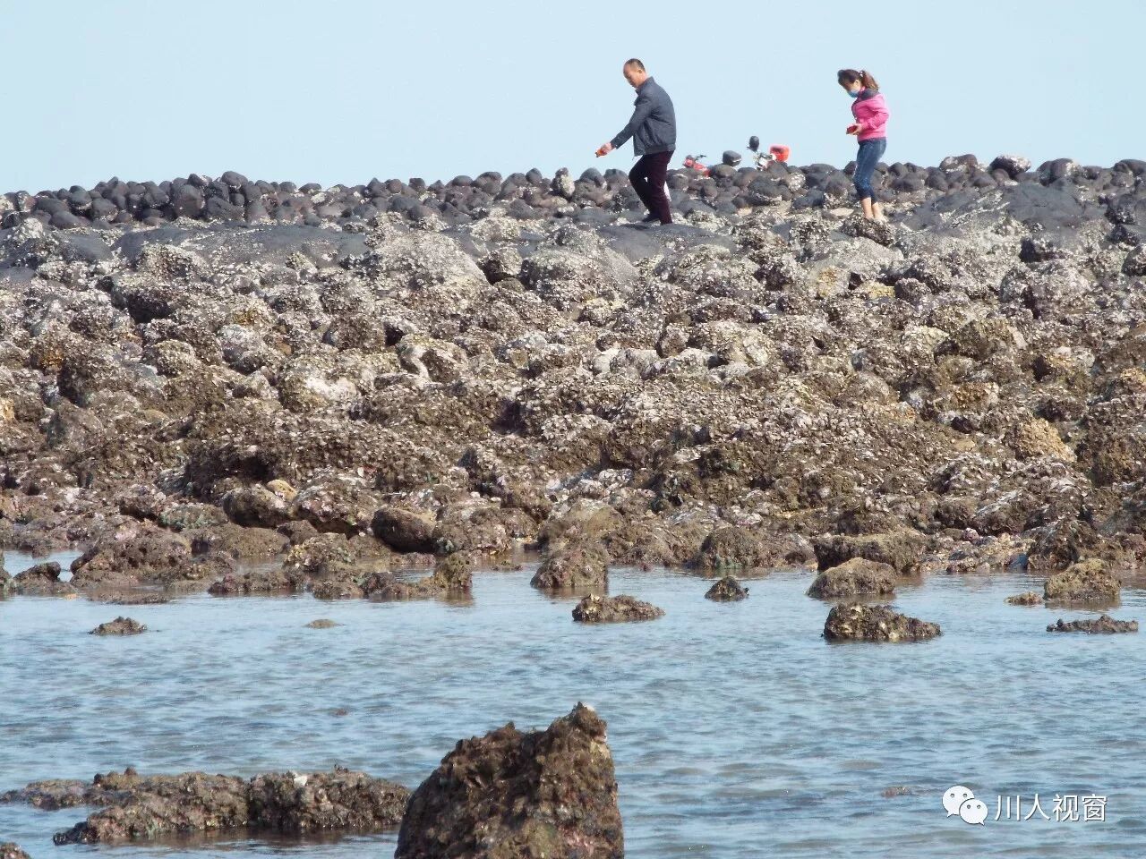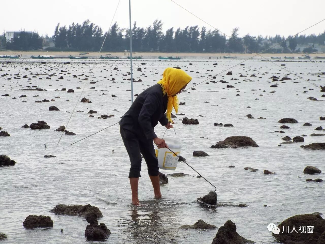 你看!妻赶海来夫提桶,妻唱夫随其乐融融!