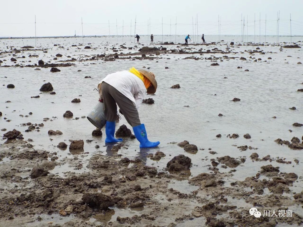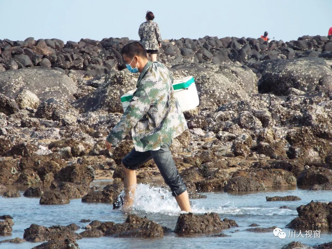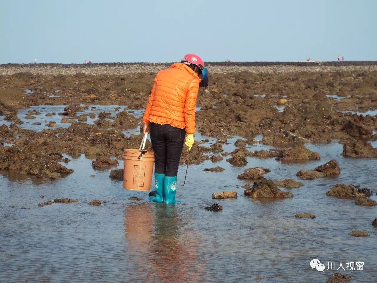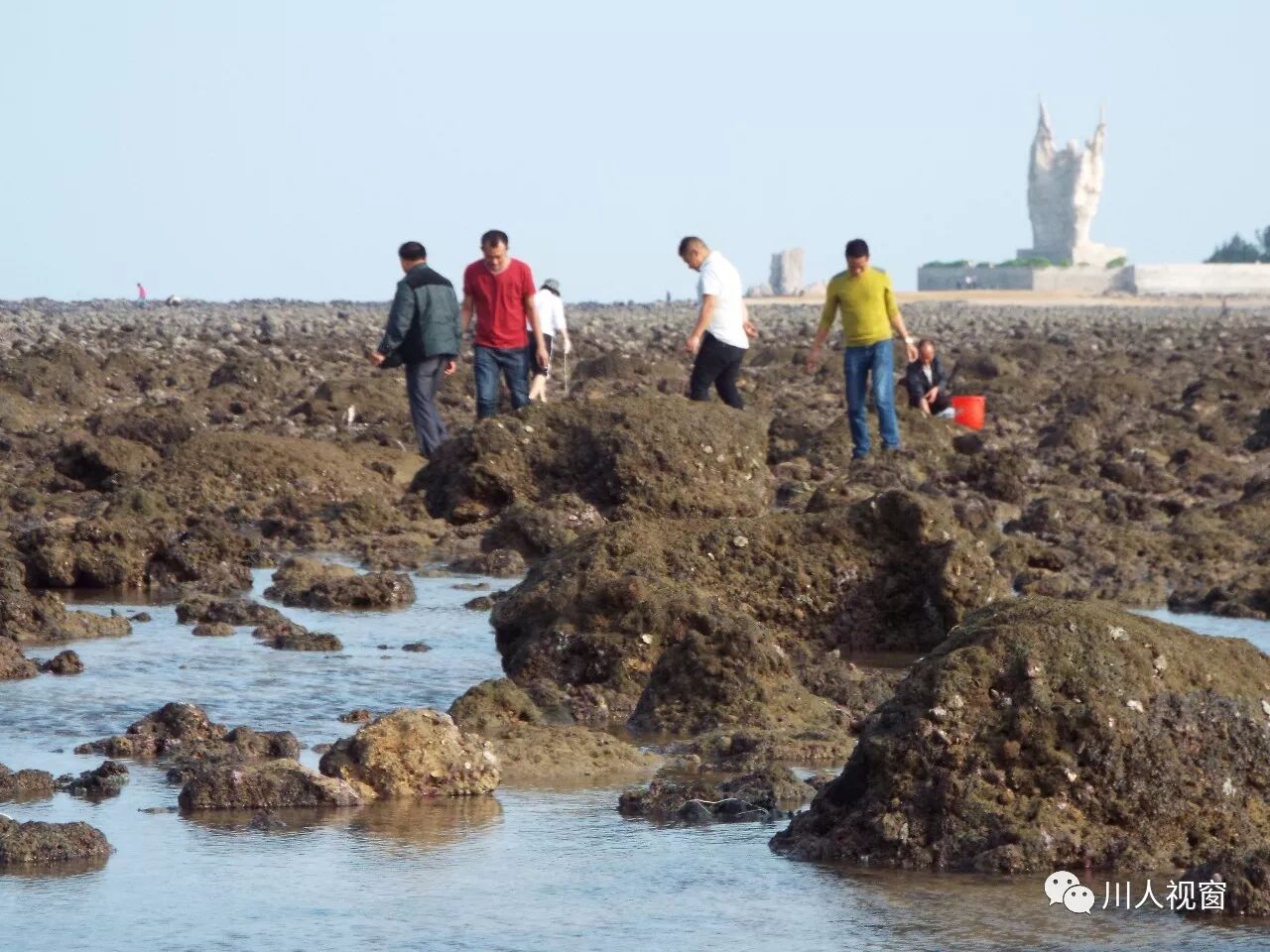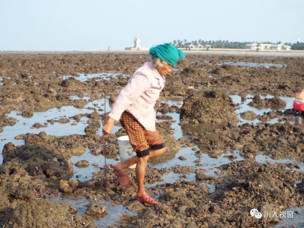 你看!妻赶海来夫提桶,妻唱夫随其乐融融!