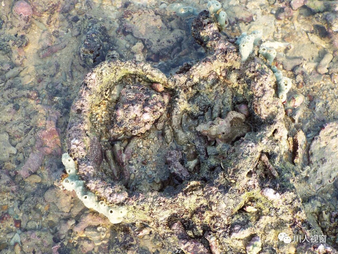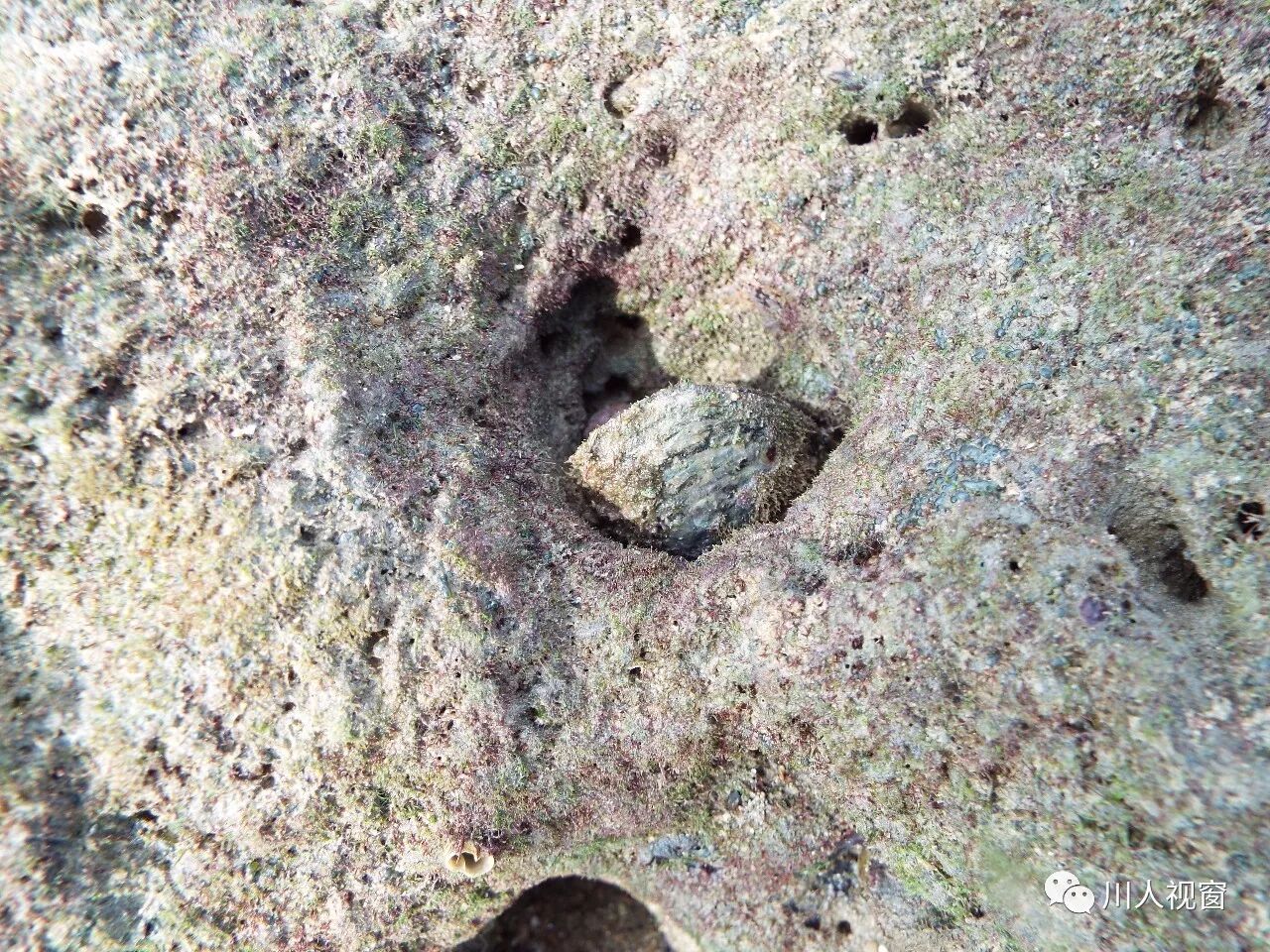 一只石头蟹藏在礁石缝里,即将变成阿婆的美食啦!