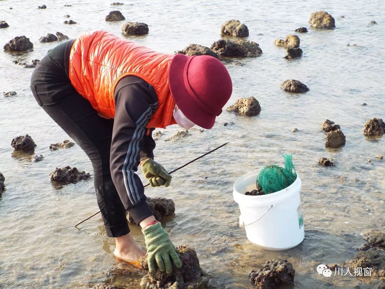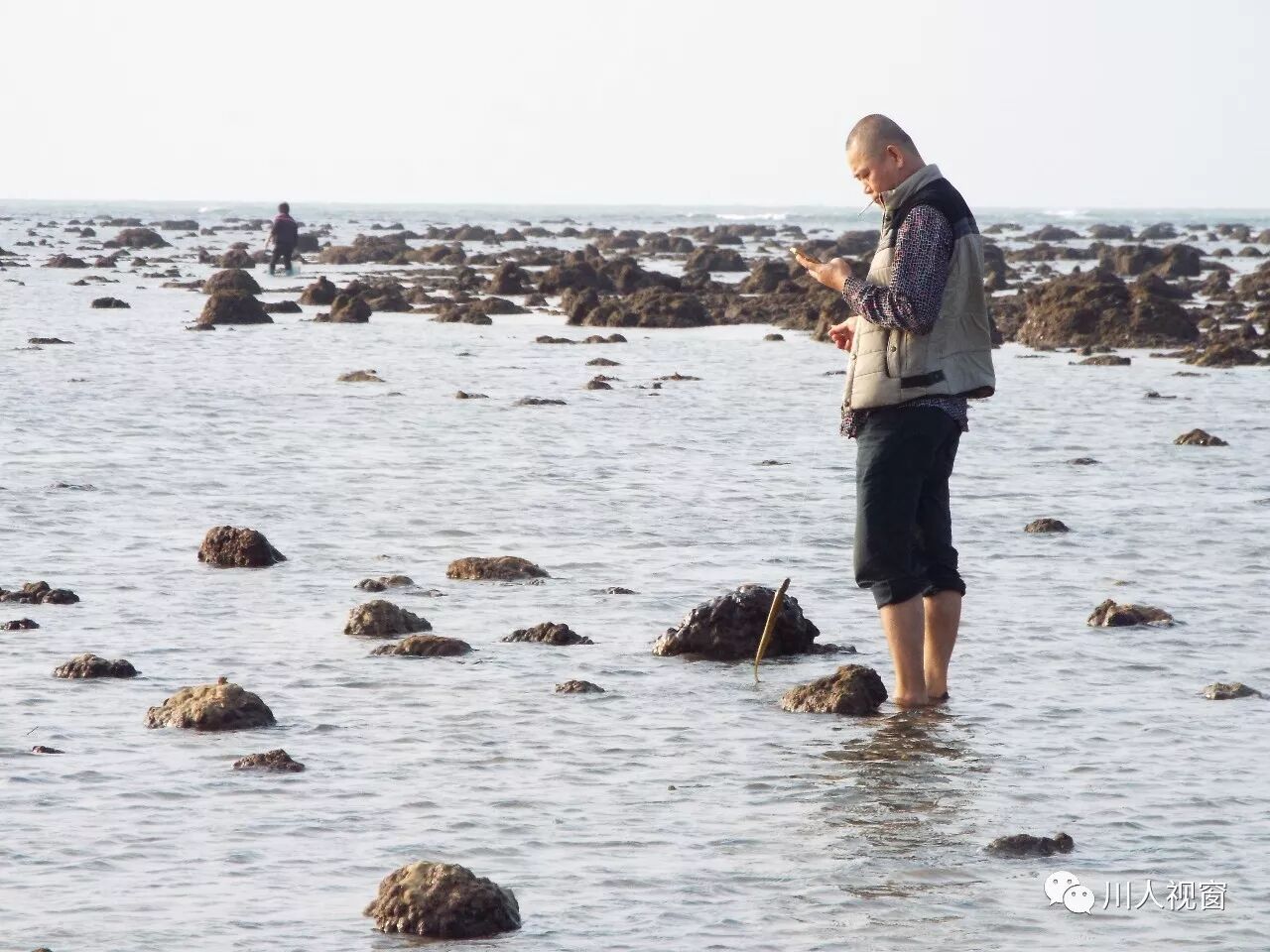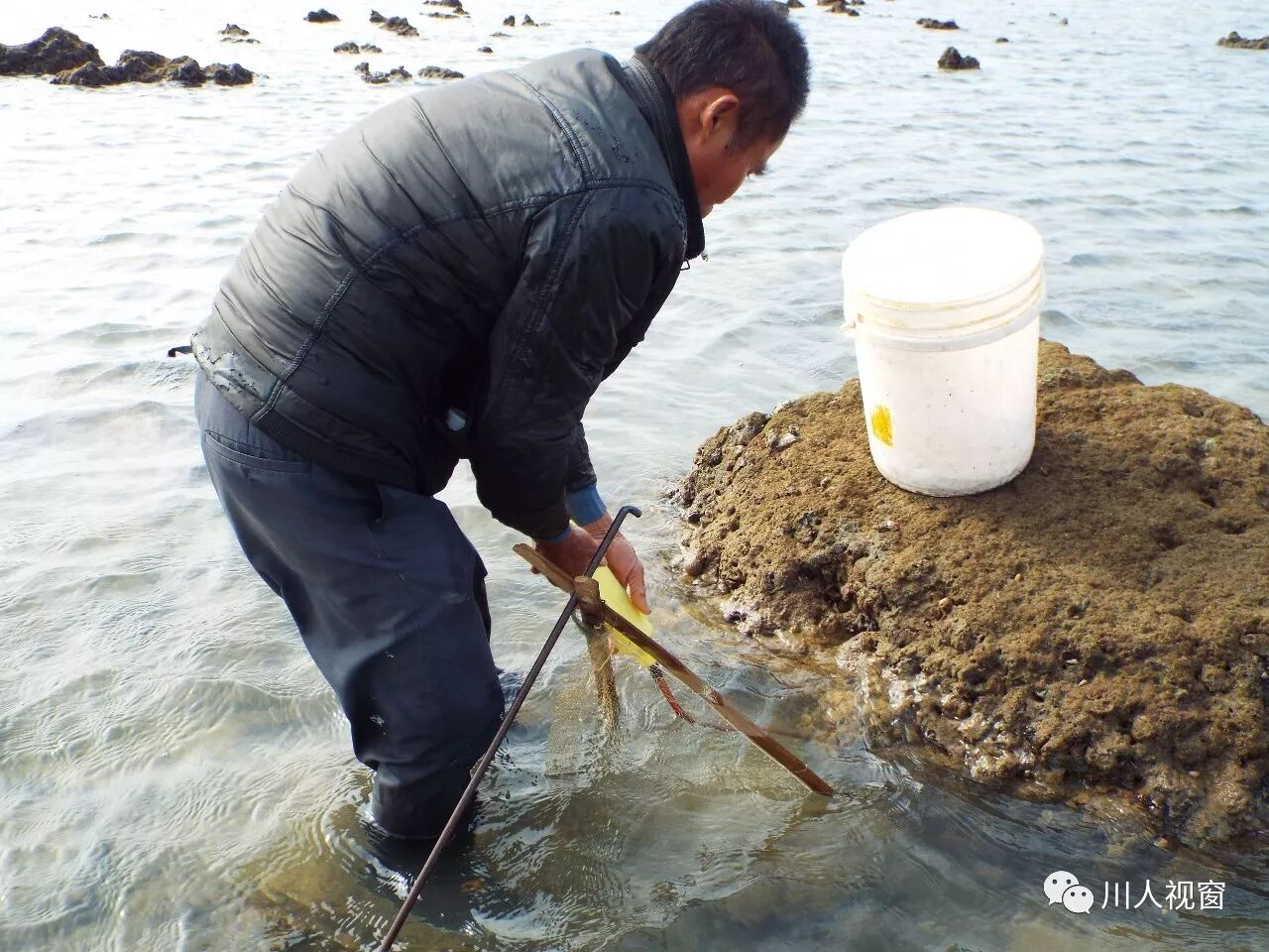 看这工具,这大哥一定是专业的赶海能手!