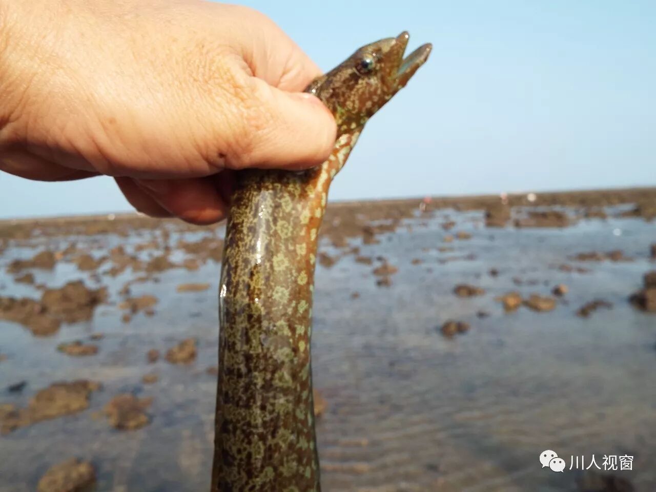 这条海鳗鱼像蛇一样,笔者抓在手里有点怕怕呀!