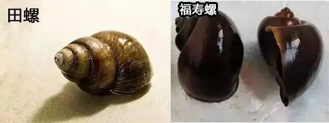 福寿螺与田螺相似,但形状、颜色、大小有区别。总结来说:田螺尾长,开口小,圆;福寿螺尾短,开口大,椭圆。