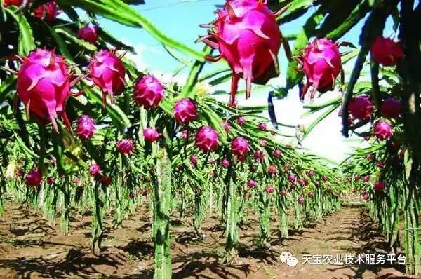 产期调节主要用补光诱导来促使火龙果提前开花,提前结果。运用补光诱导技术,既可以做到提前,也可以做到延后,全国各地都在使用该项技术。