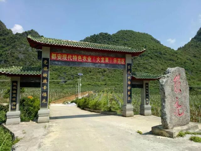 都安广发火龙果专业合作社成立于2014年8月,位于广西省河池市都安县地苏镇头亮屯,主要种植红心火龙果,以开展新型农业观光旅游为辅的企业。合作社注册资金为1000万元。种植火龙果面积530多亩,火龙果基地所在区域远离工厂、医院,且土壤肥沃,地形平坦,日照充足,雨量充沛,全年少有霜冻,非常适合火龙果生长,为优质火龙果生产提供了得天独厚的条件。